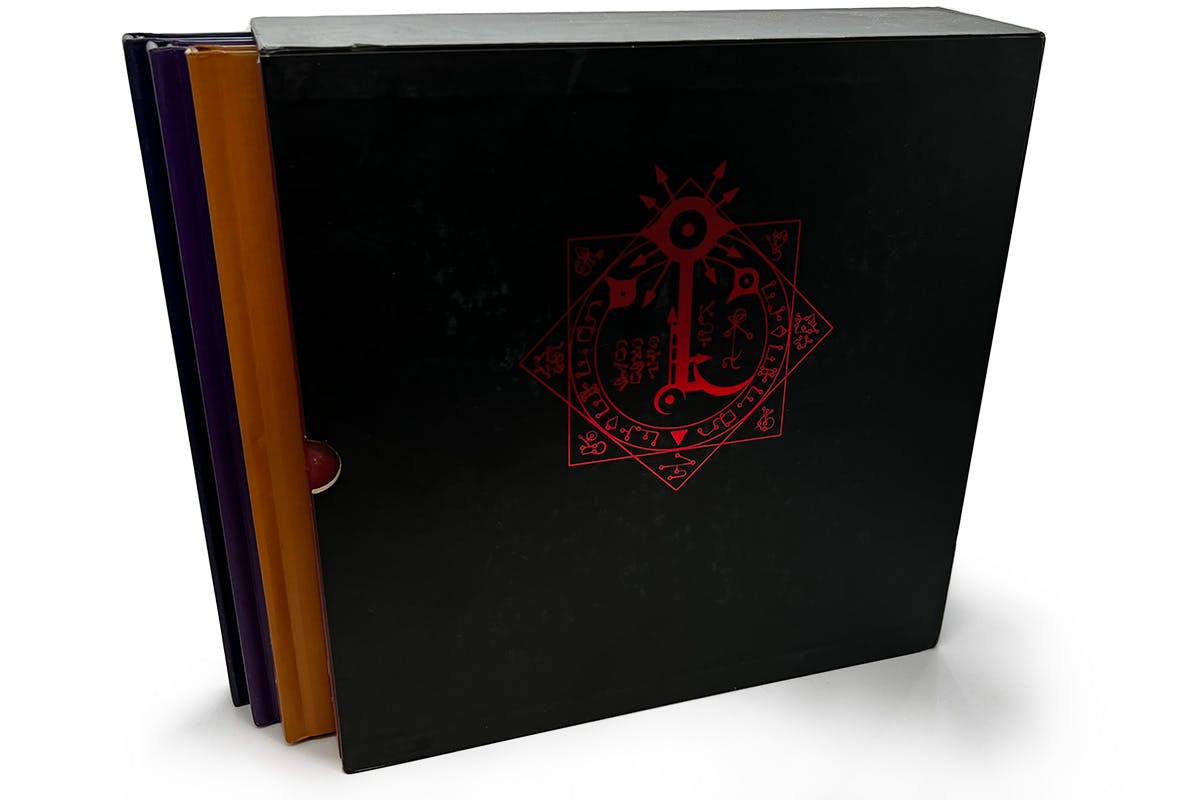 Here you see two Invisible Sun items: the slipcase that houses Book M (shown here with corebooks from the Black Cube) and the Vislae Kit. In both cases, the “box” is more than mere packaging—it is a sturdy, useful, and elegant container that serves not just the product that came within it, but also other Invisible Sun items, on your bookshelf and at the game table. These are practical and beneficial beyond their primary role as mere boxes.