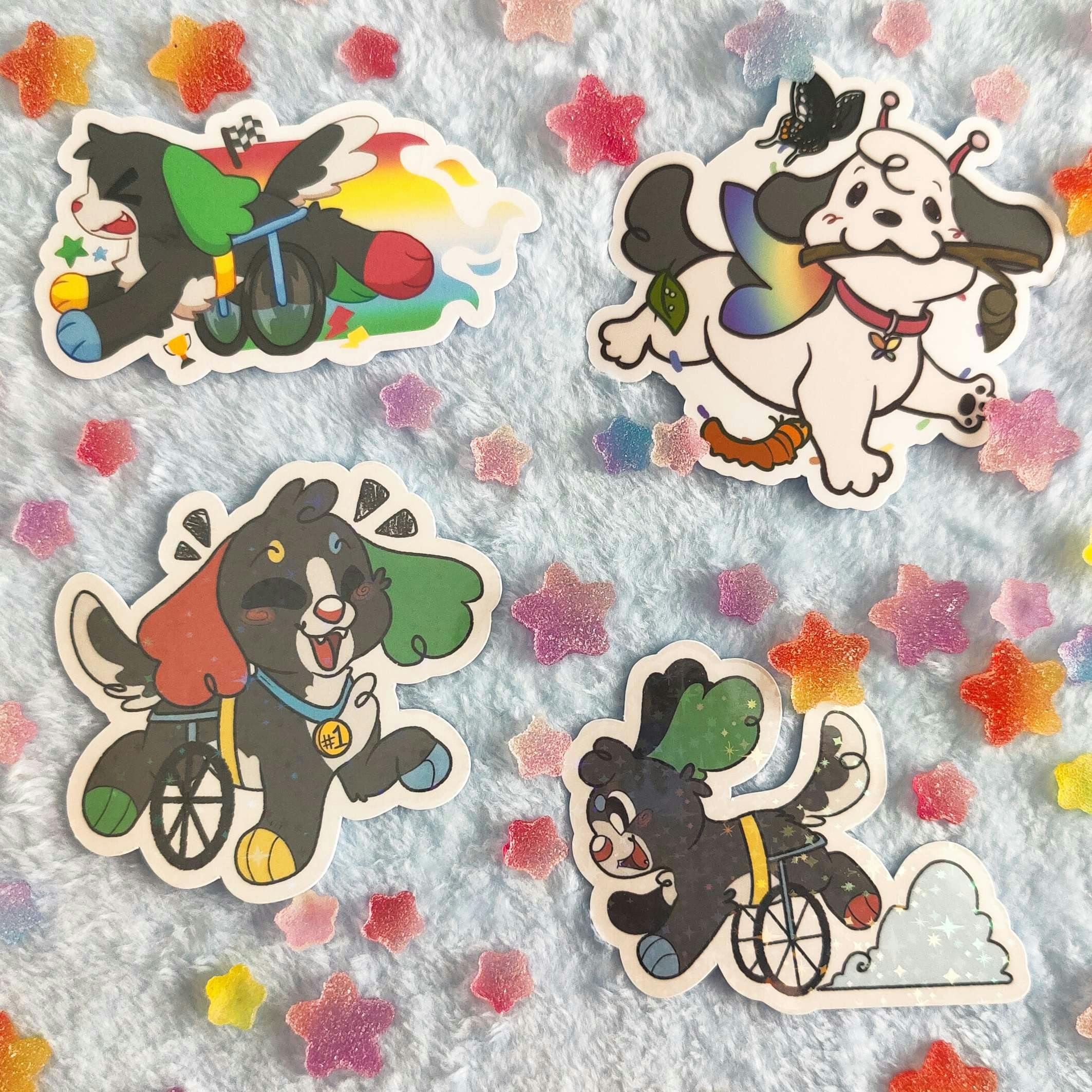 Stickers will be 3" large and made of vinyl! they will have a variety of finishes including matte, glossy, and holographic! Additional designs will be showcased here as they are finished!