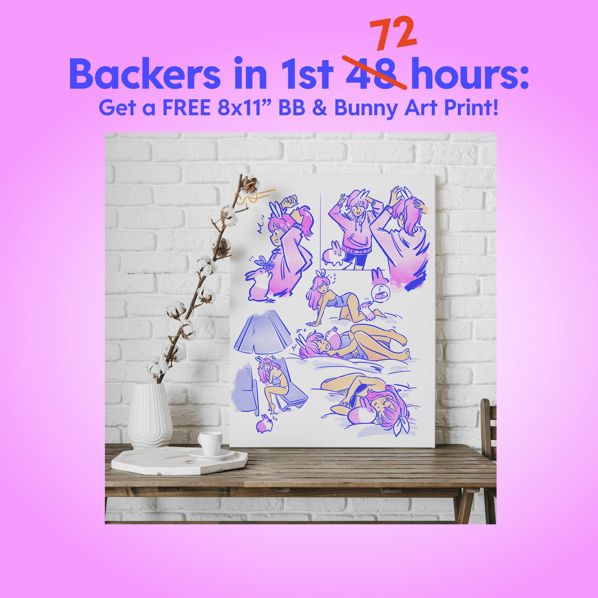 BB & Bunny Splash Zine containing comics, illustrations, sketches, and author's notes, estimated 16-24 pages. 8.5 x 5.5" printed on high gloss and HQ card stock paper. (Note: Zine cover subject to change just a bit!)