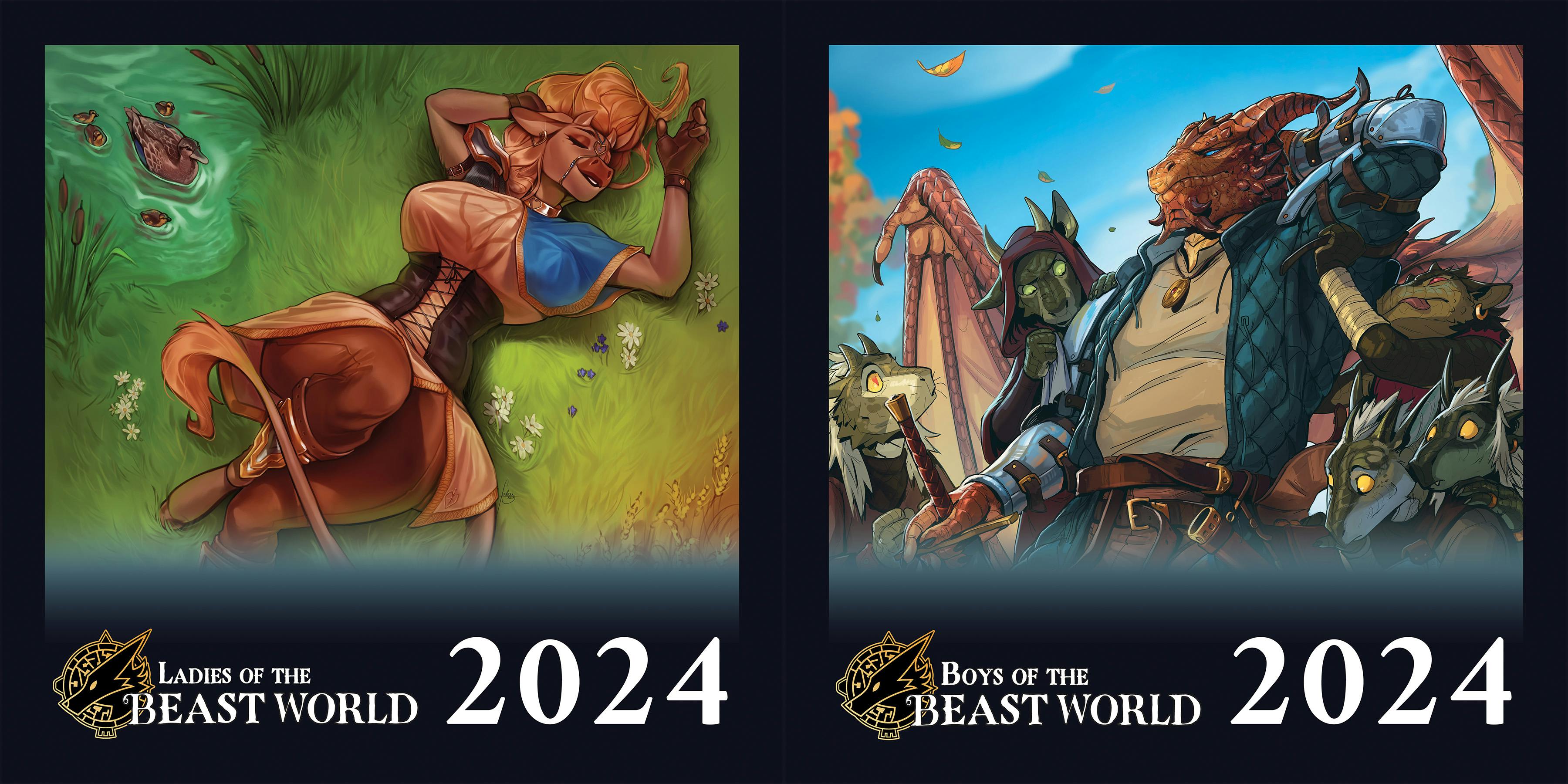 Each 12-month 2024 calendar is 12"x12" on glossy 157 GSM art paper. Each calendar marks off the Beast World's most noteable holidays as well, such as the Foxencat and the SHL Championships. You can choose between the masculine or feminine version, or get both for $5 off!