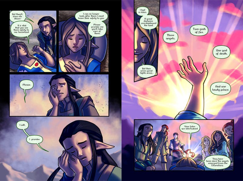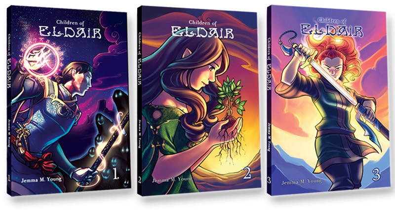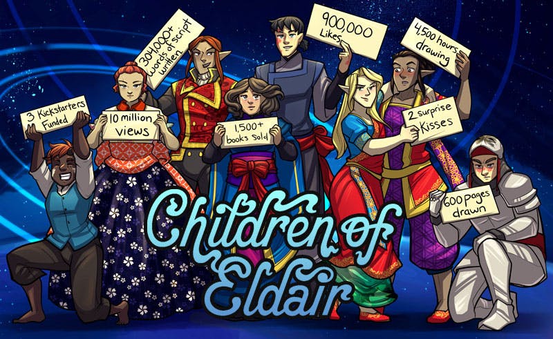 Children of Eldair launched in 2012 as a humble little webcomic on its own website. Since then, it has consistently updating and growing as a comic and as a community. Since 2012 Eldair has gained over 150,000 subscribers on Webtoons alone, has over 10 million views, and funded and fulfilled 3 graphic novel Kickstarter Campaigns. The reader response has been incredible, and I’m excited to finally launch the highly anticipated fourth book!