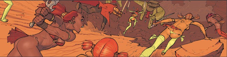 The trading port of Xarnath is the leading destination for pirates, profiteers, and scoundrels. Ruled with an iron fist by the Dragon Sheikh Ad Arphax, it's an uphill climb for any ambitious businessman (or woman) to get a leg up on the competition... especially when that competition is Ad Arphax himself. Lady Ellora has an idea to boost her brothel's business by recruiting some Sirens from the Island of Mermaids but to find this island, she'll need the help of a down-on-their-luck trio of adventurers and the notorious pirate Tao Bang! Can she trust this crew? And can they survive pursuit when Ad Arphax finds out about this scheme?