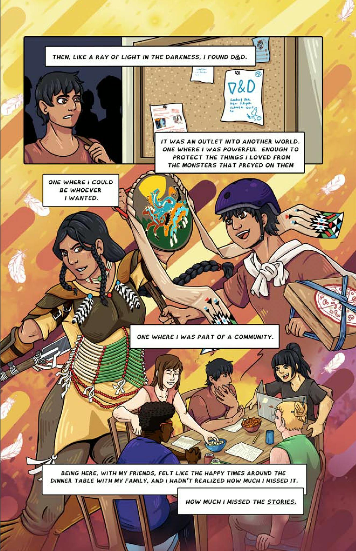 Indiginerds: Tales from Modern Indigenous Life is 6.625 inches Ă— 10.25 inches, and full color throughout! Its 120 pages contain 11 fun, confessional, and exhilarating stories of Indigenous people balancing traditional values and pop culture. Our line-up includes:
