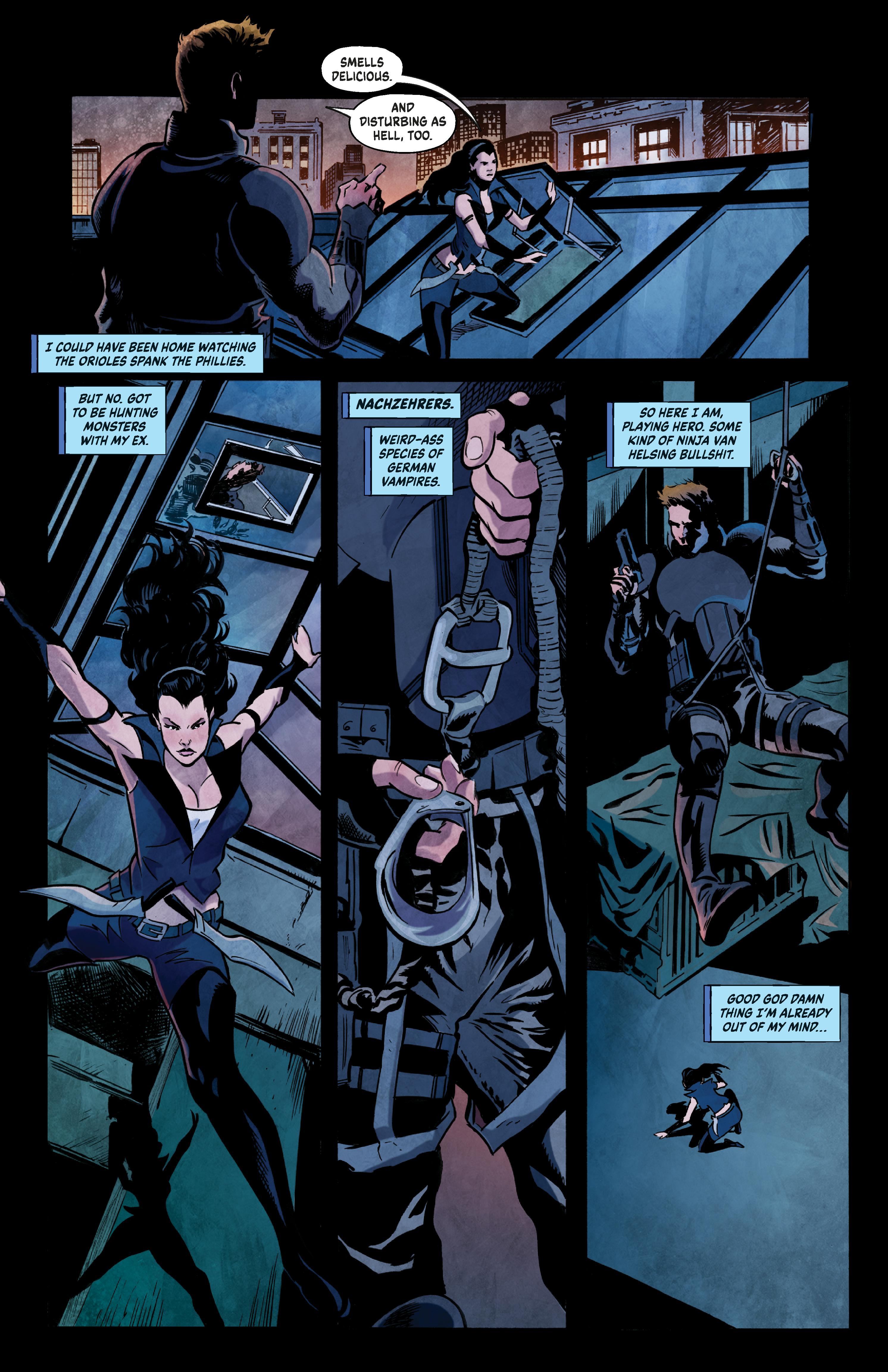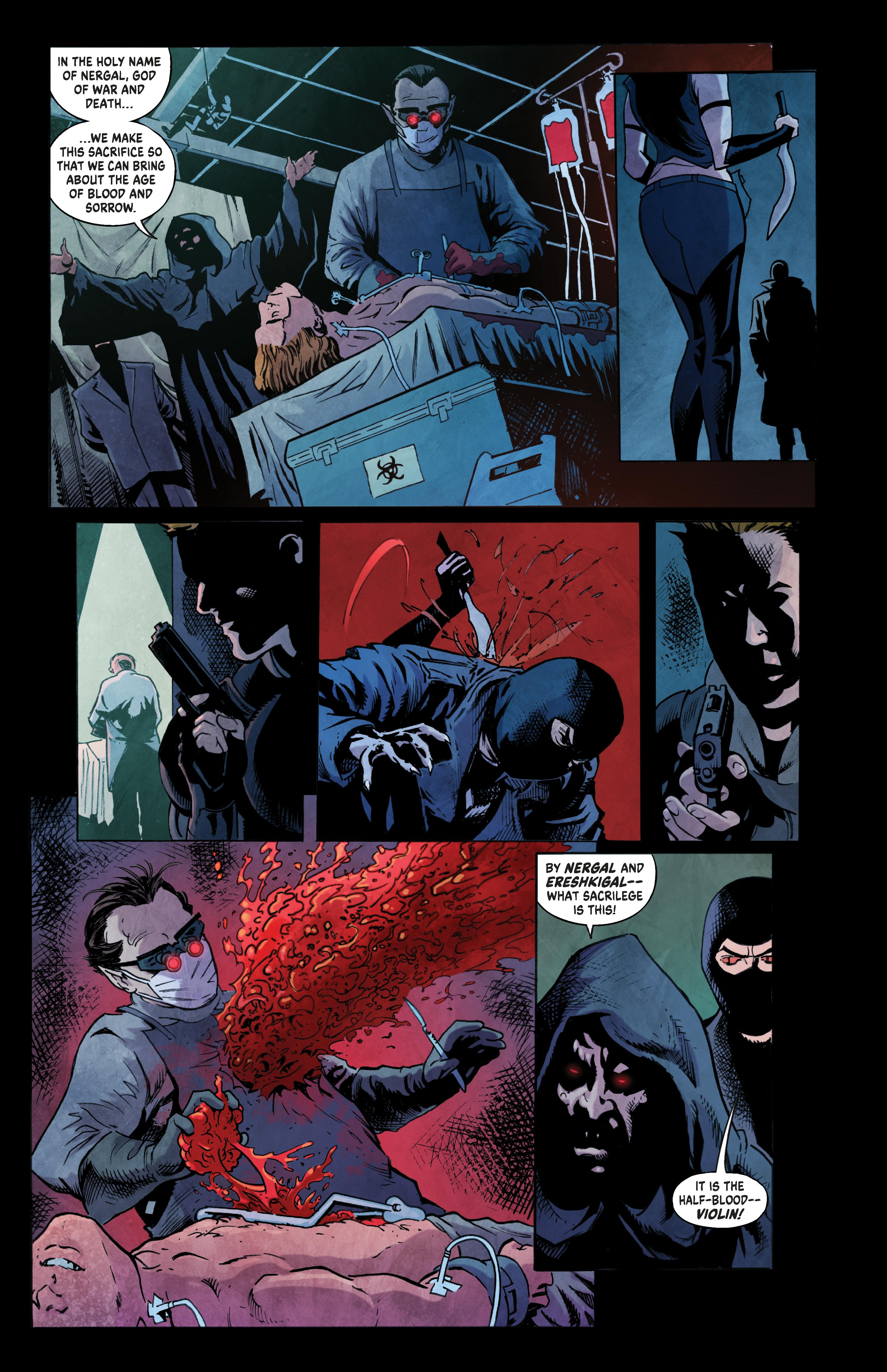 In their first comic book adventure, Mr. Church sends Ledger and Violin on a a case involving a bizarre kind of human trafficking. People—mostly young and innocent—are being found dead all across the U.S. Drained of blood but also missing key internal organs—brains and hearts. Their bodies are marked with strange symbols from ancient religions and the deaths have all the earmarks of some deadly kind of human sacrifice.