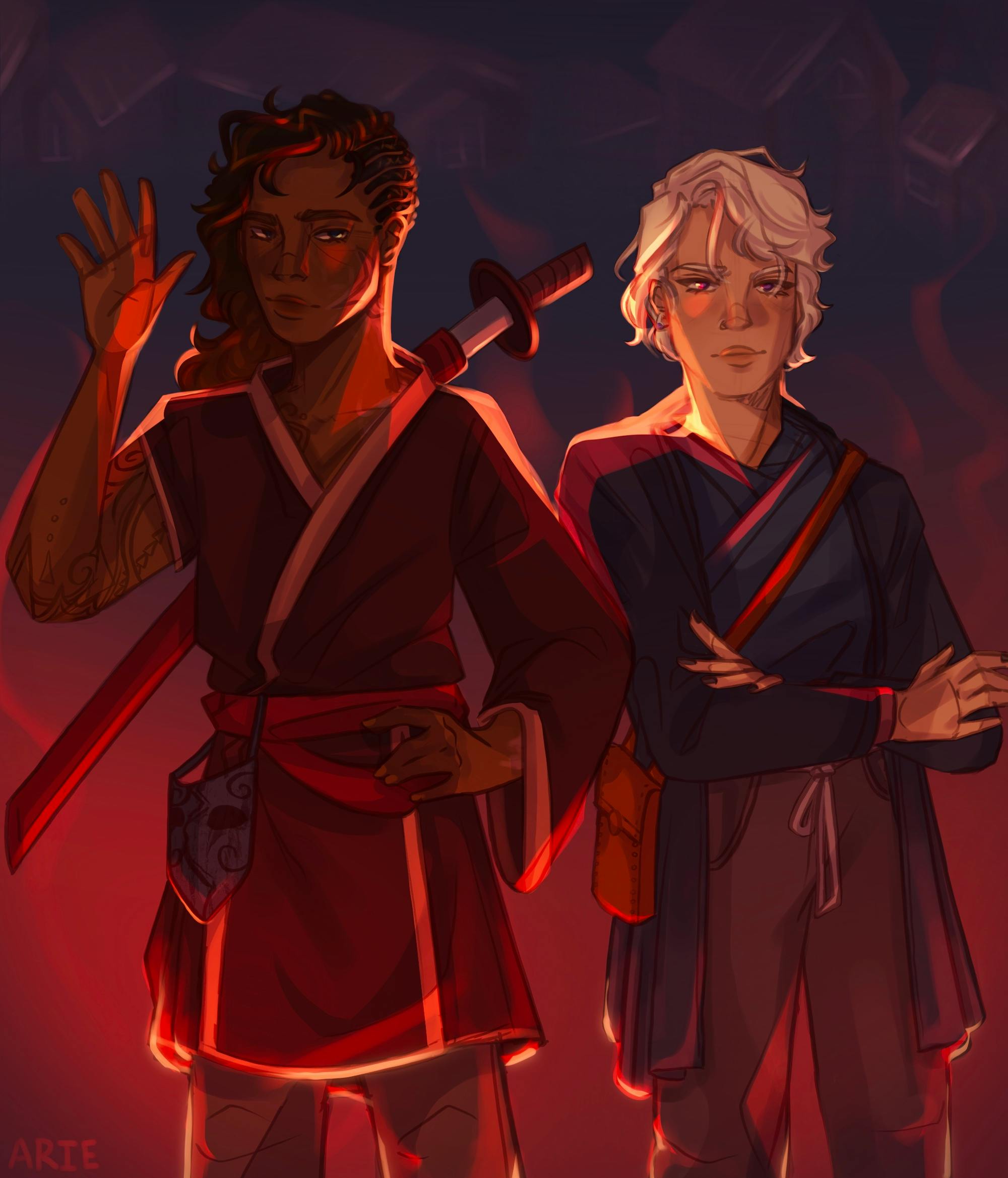 Nero (left) and Umbra (right) in the concept stage, done by Julia (arieart)