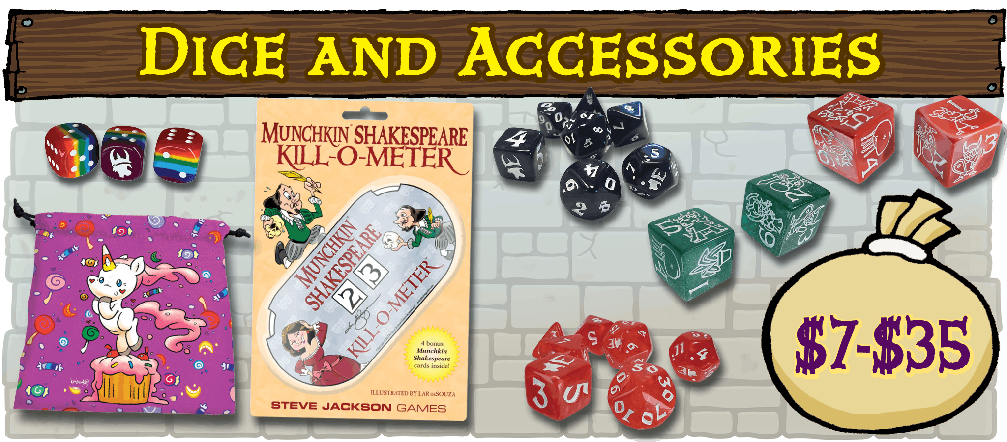 Remember, the campaign add-ons store will only have John Kovalic illustrated releases available. If you're wanting to check out some of the dice above, along with some of the other sets illustrated by other Munchkin artists and so much more, that will come with the pledge manager add-on store in a few weeks.