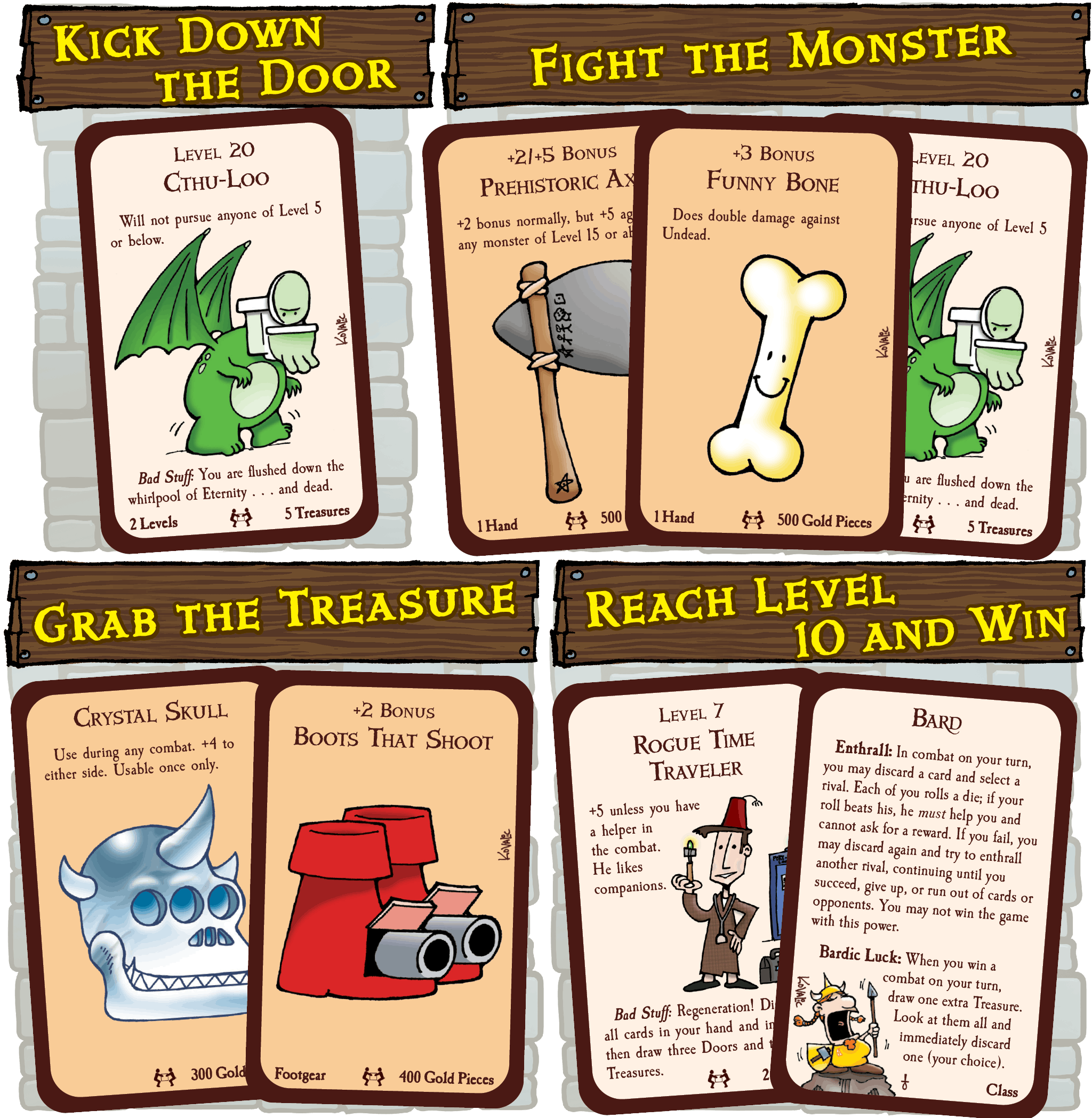 It's the biggest edition ever for the mega-hit card game about fantasy adventure . . . with none of that stupid roleplaying stuff. Go down in the dungeon. Kill everything you meet. Backstab your friends and steal their stuff. Grab the treasure and run.