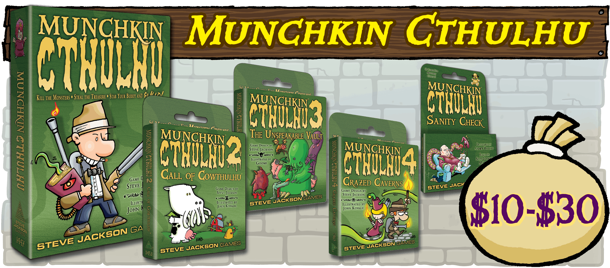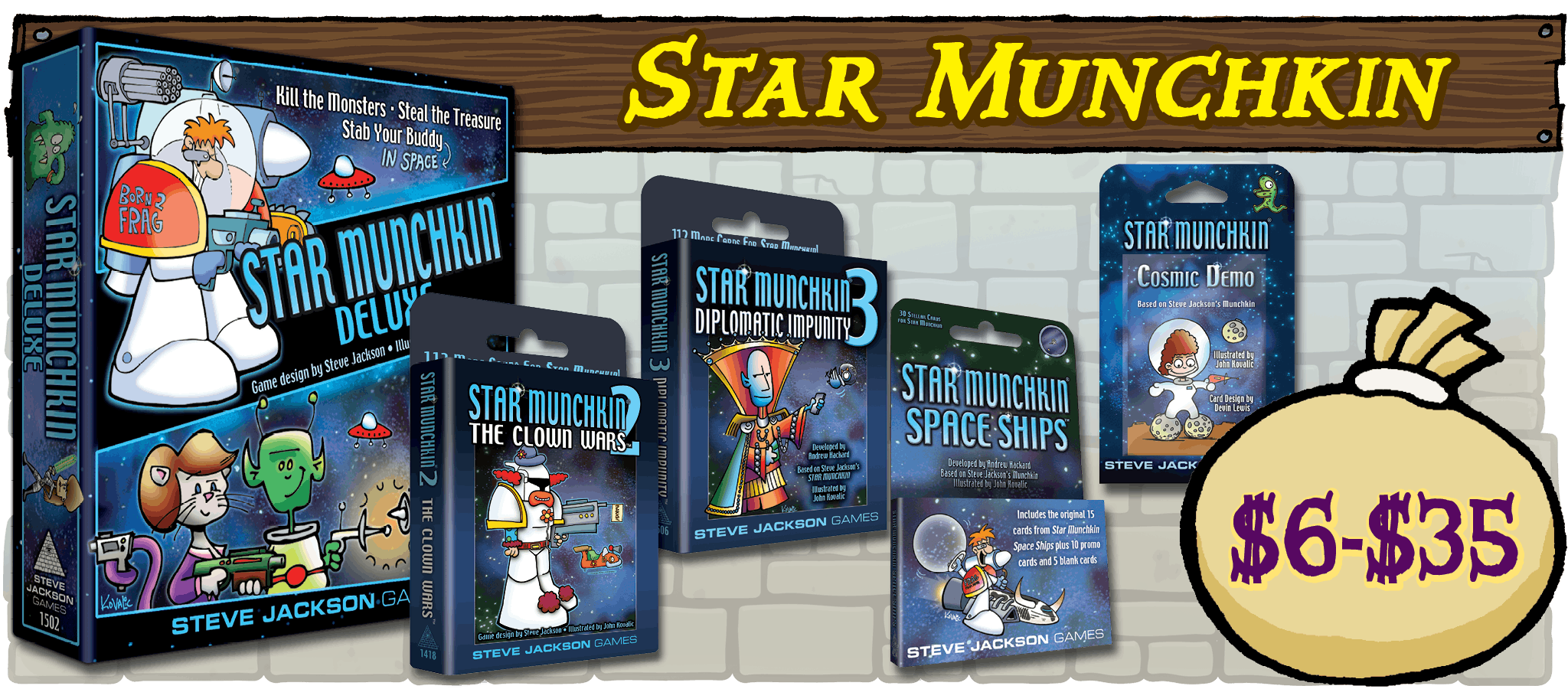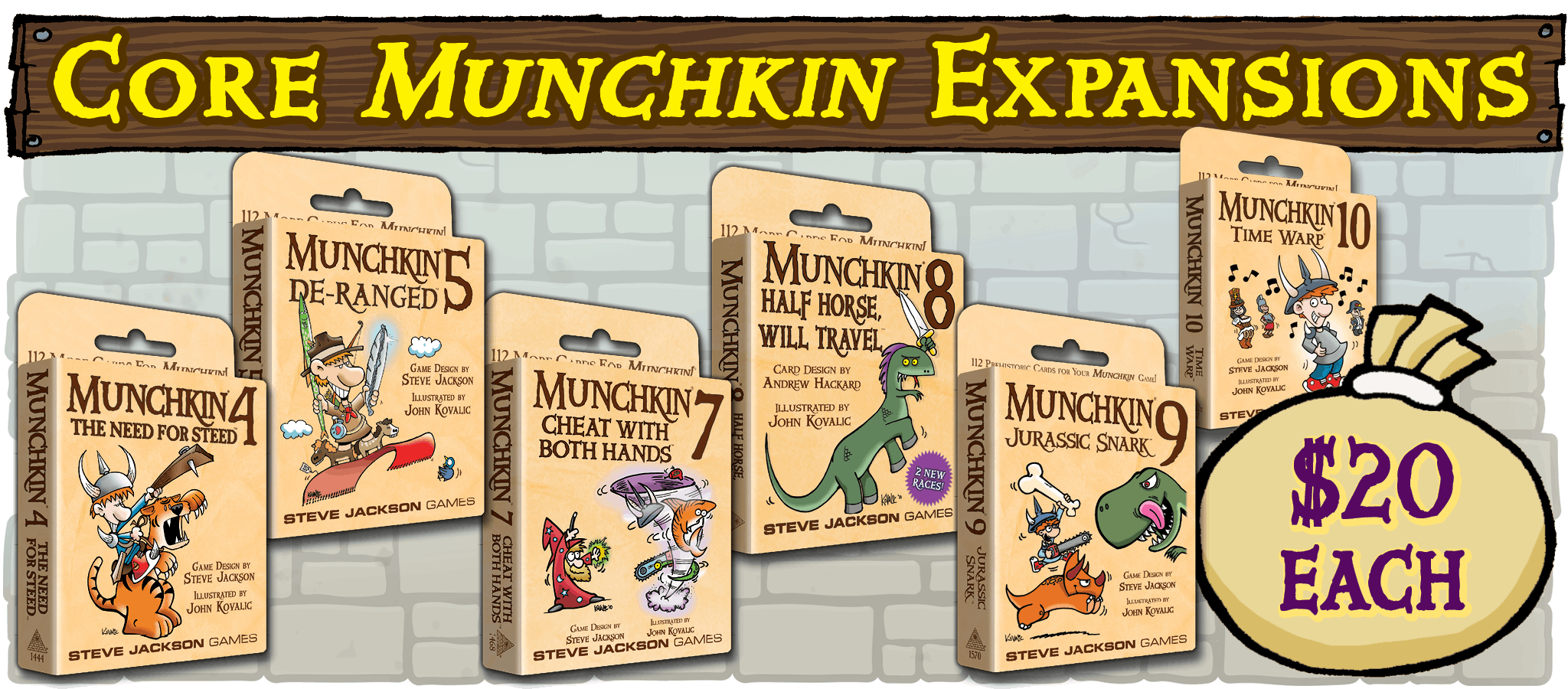 Steve Jackson Games, based in Austin, Texas, has been publishing games, game books, and magazines since 1980. Our top hit is Munchkin, with over 12 million Munchkin games and supplements in print worldwide. Other hits include GURPS (the Generic Universal RolePlaying System), The Fantasy Trip, Zombie Dice, Car Wars Sixth Edition, Ogre, and Illuminati.Â