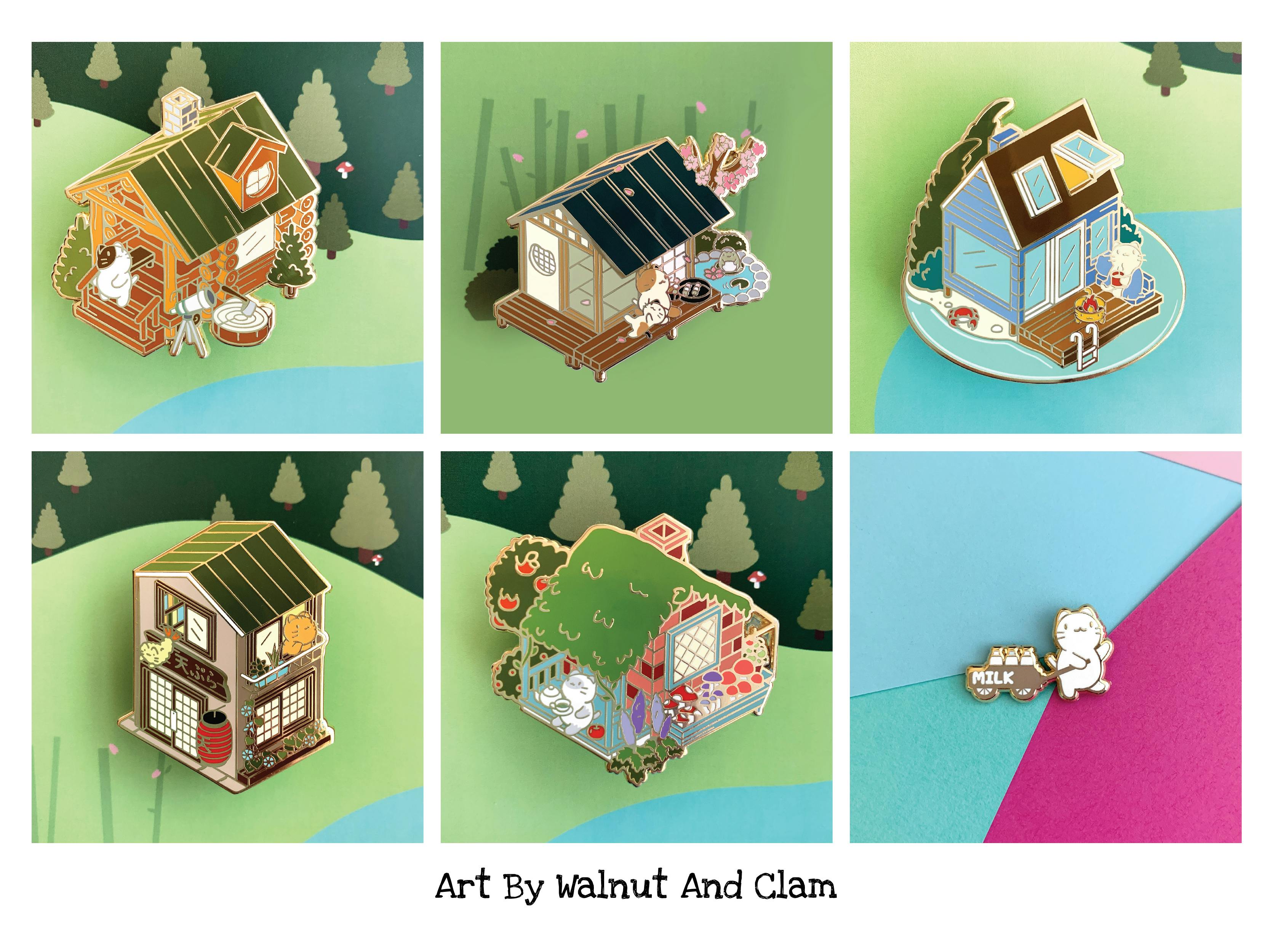 For this project, there will be a total 12 mini enamel pins, one of which is the cross over pin with Amber & Moss. The pins measure around 0.6" - 0.9" big, depending on the design. All pins come with one or two pin posts with rubber clutches. I will discuss with my manufacturer to see if we can have two pin posts for some of the pins. Let's take a look at the designs!