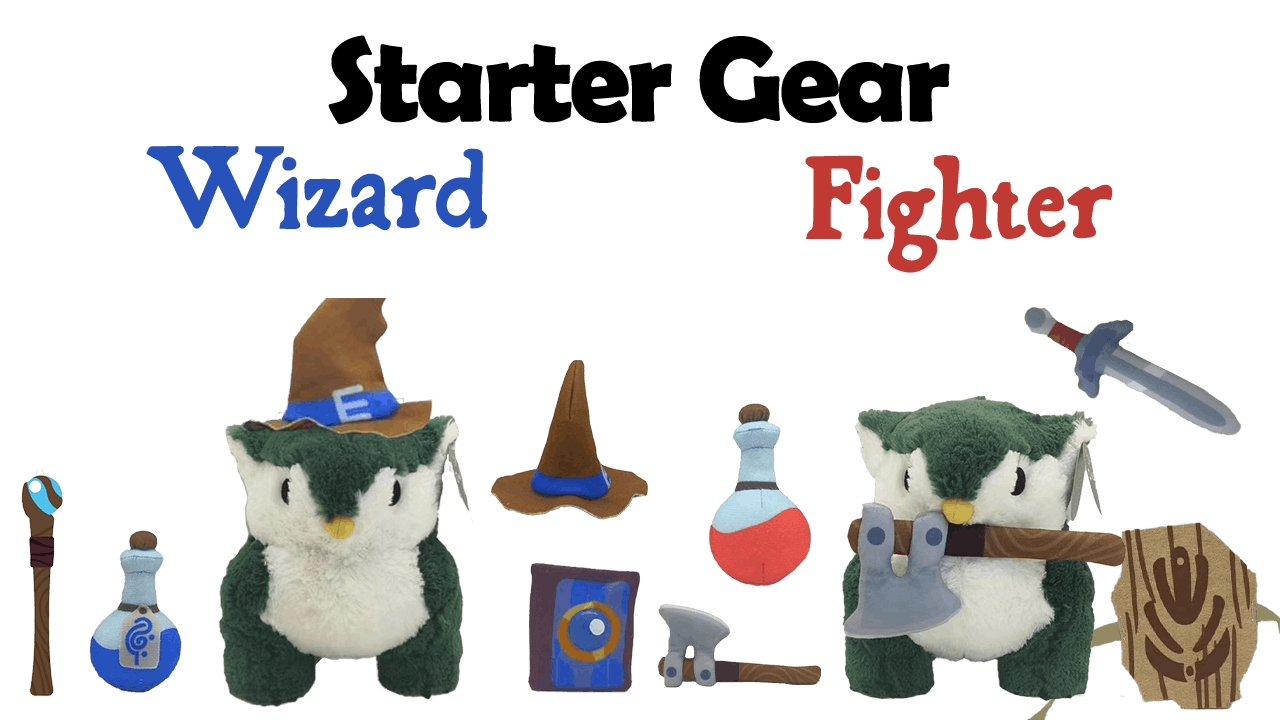 Get the Fighter Starter Gearand the Wizard Starter gear shown above. (*Owlbear plush not included)