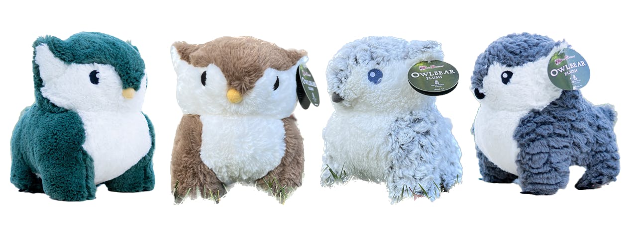 avaliable owlbear colors Left to right (Mossy, Brown, Snowy, Charcoal)