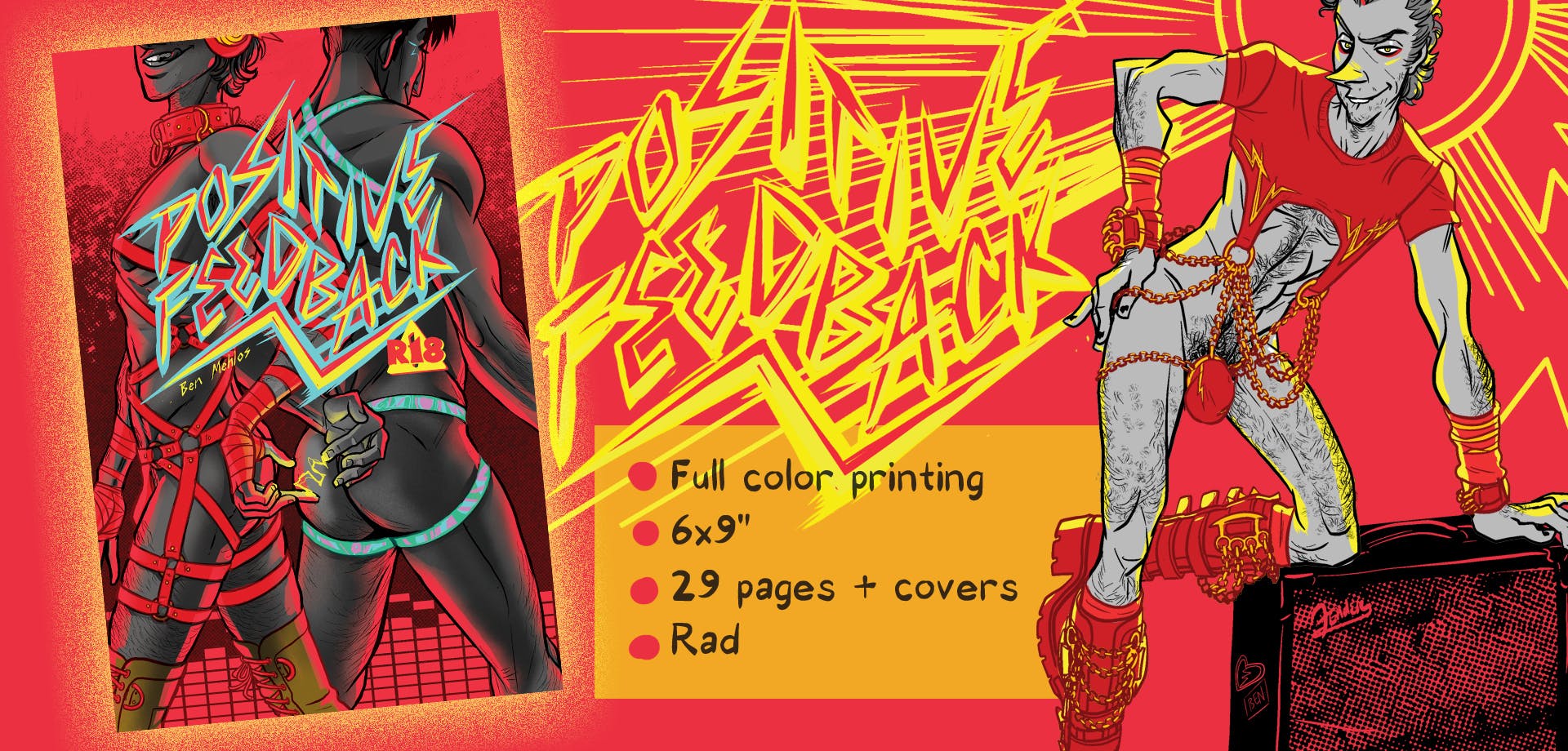 Positive Feedback is a riot of color: naturally I'll be printing it accordingly. Short run full color printing without going overseas is spendy, so your help will absolutely help take the edge off. This is going to be a standard 4 color print run on a big digital printer. The comic itself is 29 pages, the book will be 32 including full color covers, so it won't be a slim floppy by any means.