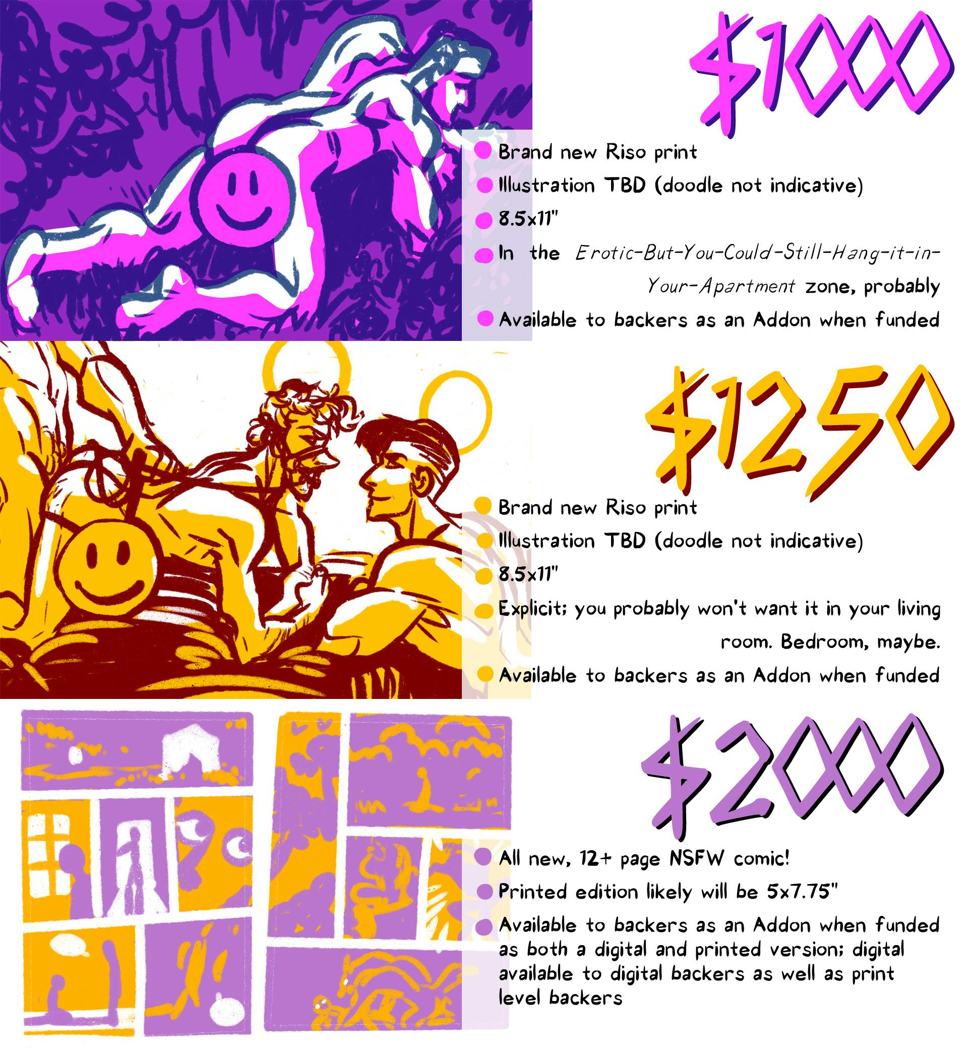 Apart from the Stretch Goals, these are completed works, already prepressed and ready to go to a printer! I've got a local Riso printer on board for Leatherbound, and I expect to have all your books shipped to you by June 2024. Reaching Stretch Goals/Achievements may add sufficient work to push back this estimated fulfillment date.