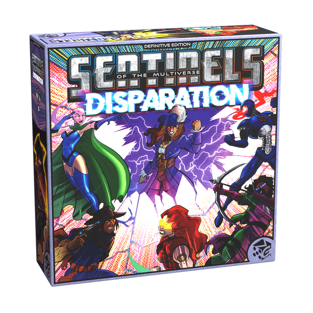 Sentinels of the Multiverse: Disparation is the latest expansion to the Definitive Edition of the hit cooperative comic book card game Sentinels of the Multiverse! Powerful heroes stand together against villains from disparate realities, each a threat to the worlds our heroes hold dear — and even to reality itself!