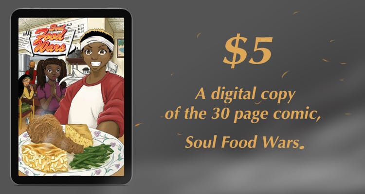 $5Â Â For just five dollars you'll get a digital copy of Soul Food Wars complete with Lejani's recipe.