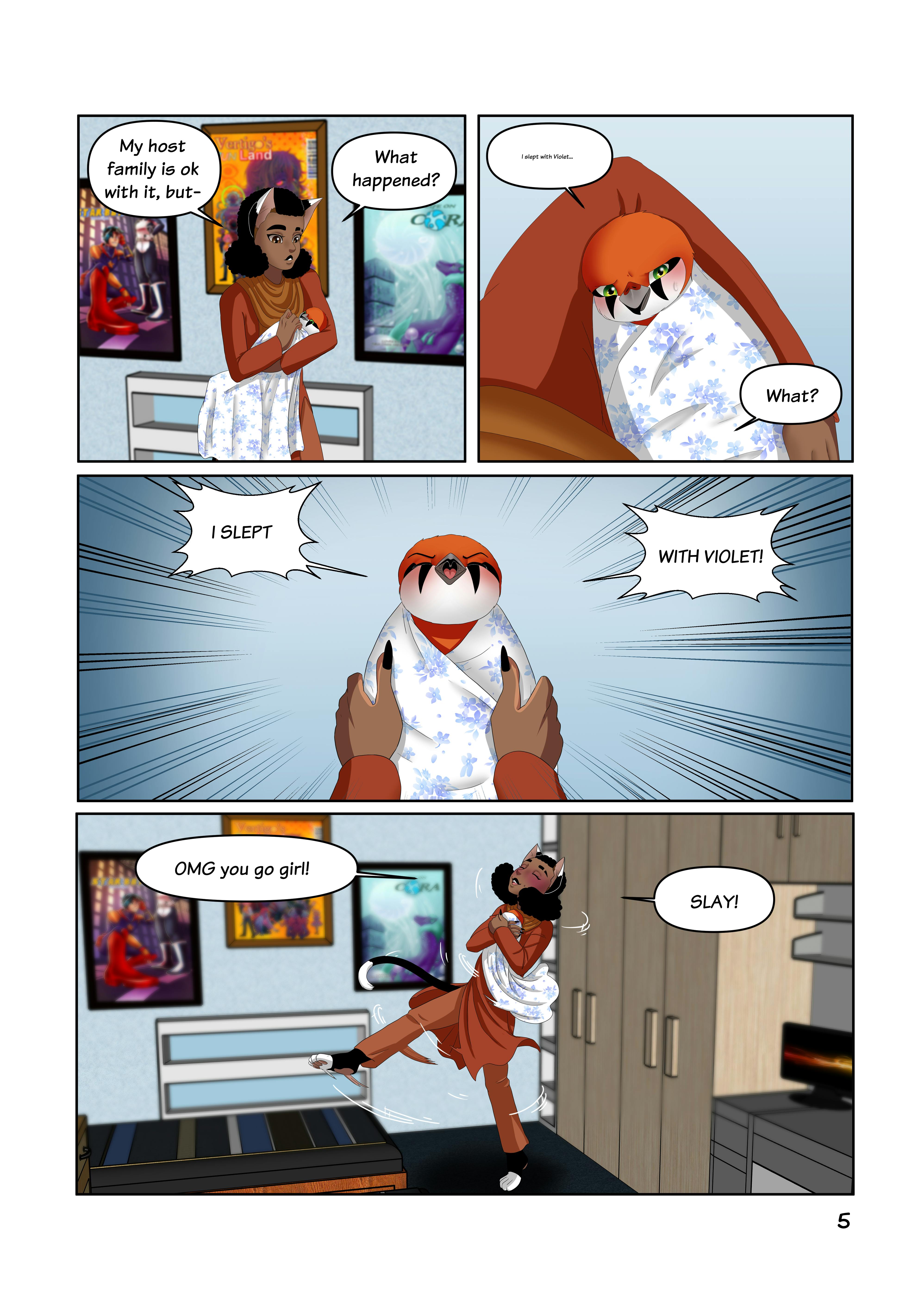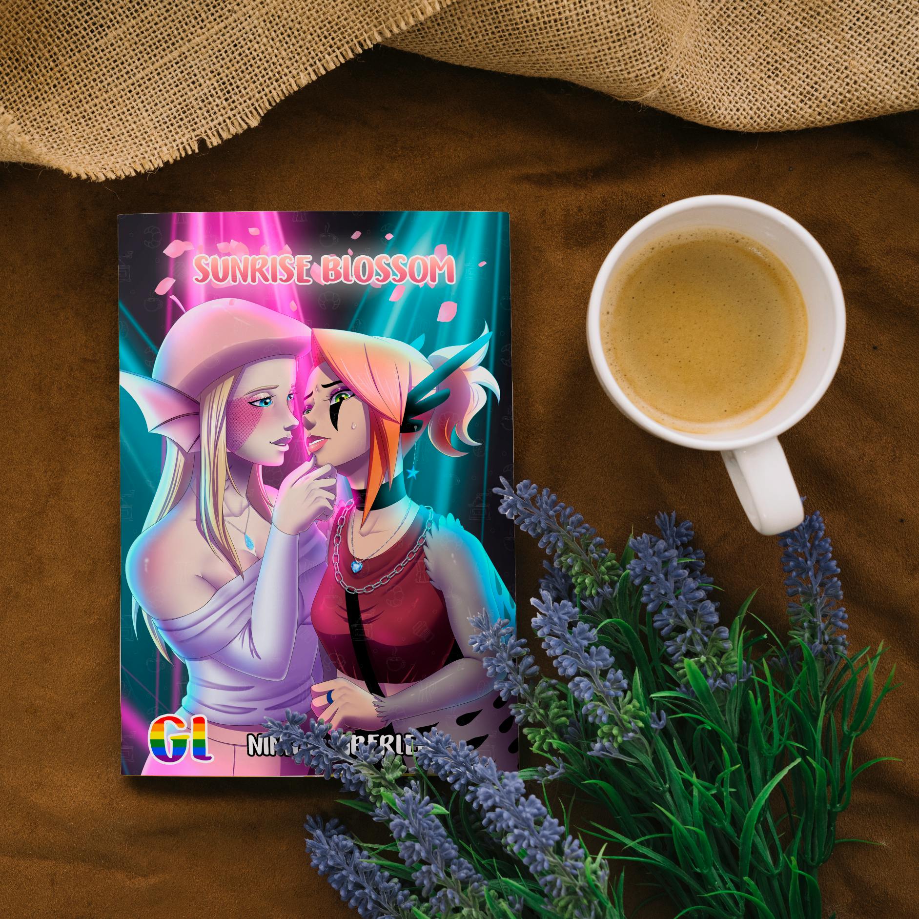 Sunrise Blossom is a coming-of-age story about Ivy, a young falcon harpy abandoned by her birth mother and raised by a family of owls. While travelling with her sister to learn about human culture, Ivy has an argument with her and is separated from her, only to be picked up by a human woman, Violet, who helps her discover herself and bloom into womanhood. But it's only after a dramatic turn of events that Ivy discovers her romantic feelings for her human companion...