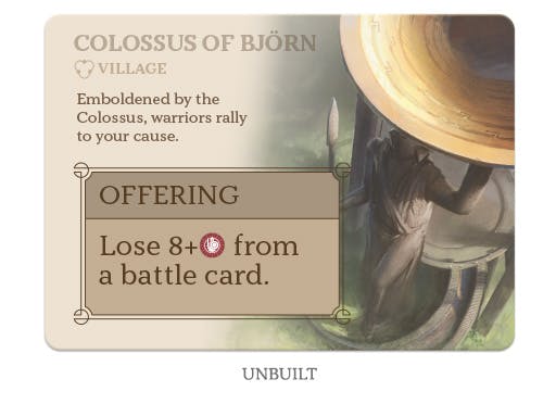 Heroes must lose 8 or more warriors in a battle to place offerings onto the Colossus. It demands sacrifice.