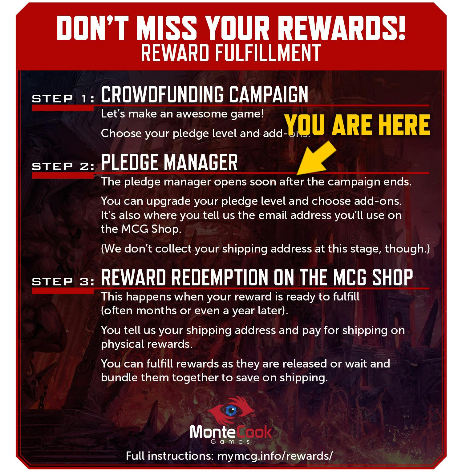 We are at the very beginning of Step 2 as shown on the graphic below, so please make sure to respond to the BackerKit pledge manager survey when you receive it.