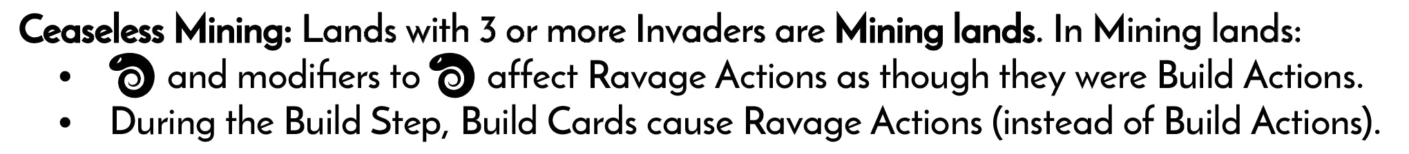 The first major rework gave this Adversary a small army of (Durable) Explorers that would march into lands that had just Explored. Moving all of the Explorers around felt too fiddly and was too hard to overcome at lower Difficulties, so that idea didn’t last long. The second major rework switched the Adversary to Ravaging in empty lands adjacent to big (Durable) stacks of Invaders. This too did not last, but it brought the Adversary to its current mining theme and association with the Habsburg Monarchy.