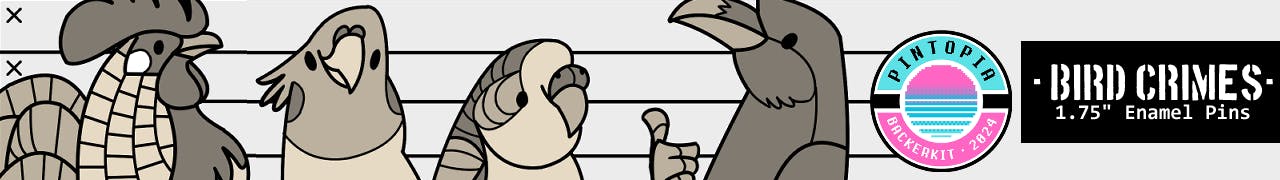 Welcome to Pintopia — a celebration of creativity and collaboration from a diverse group of artists collectively running enamel pin crowdfunding projects from March 28th -April 18th.