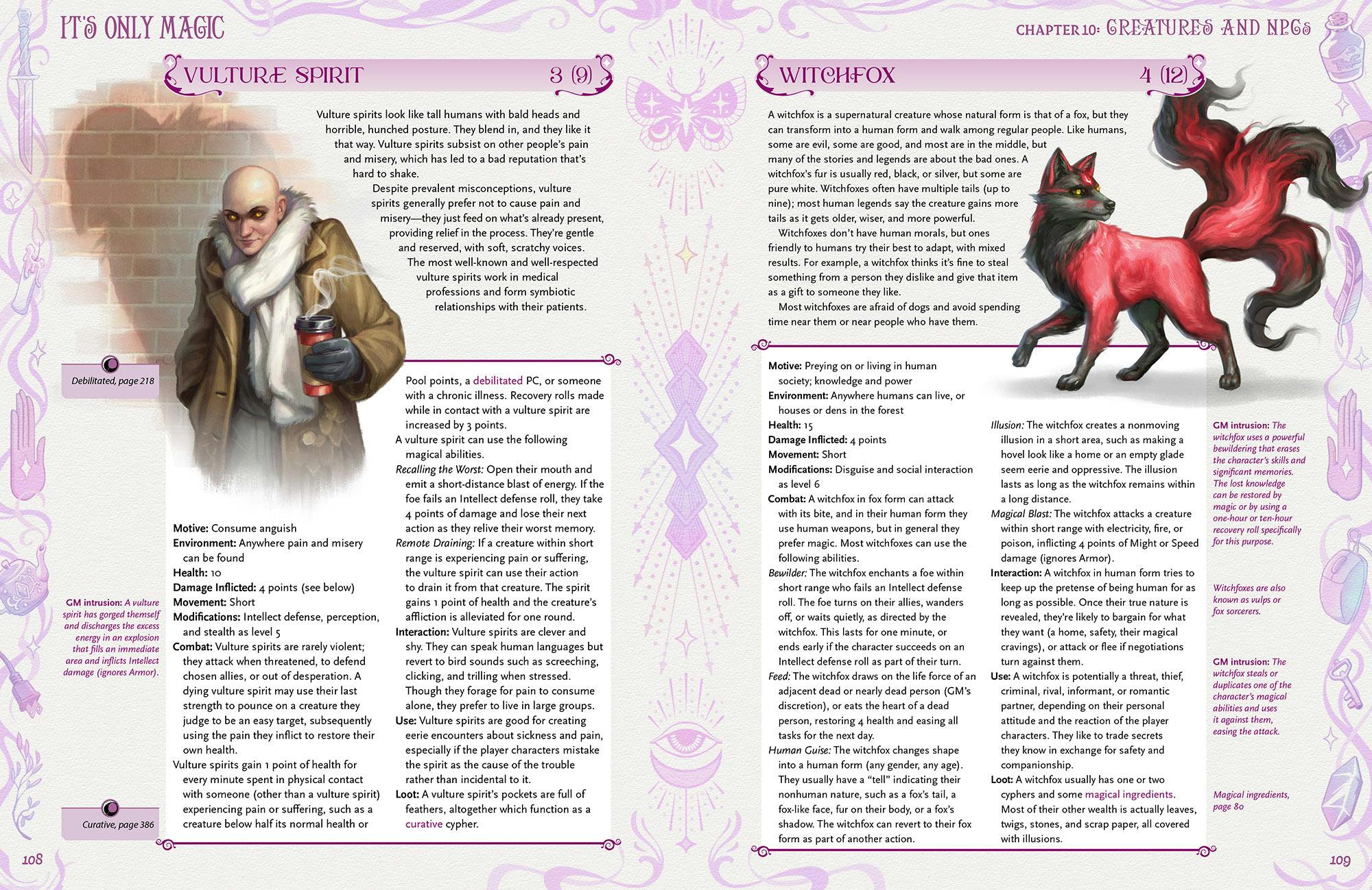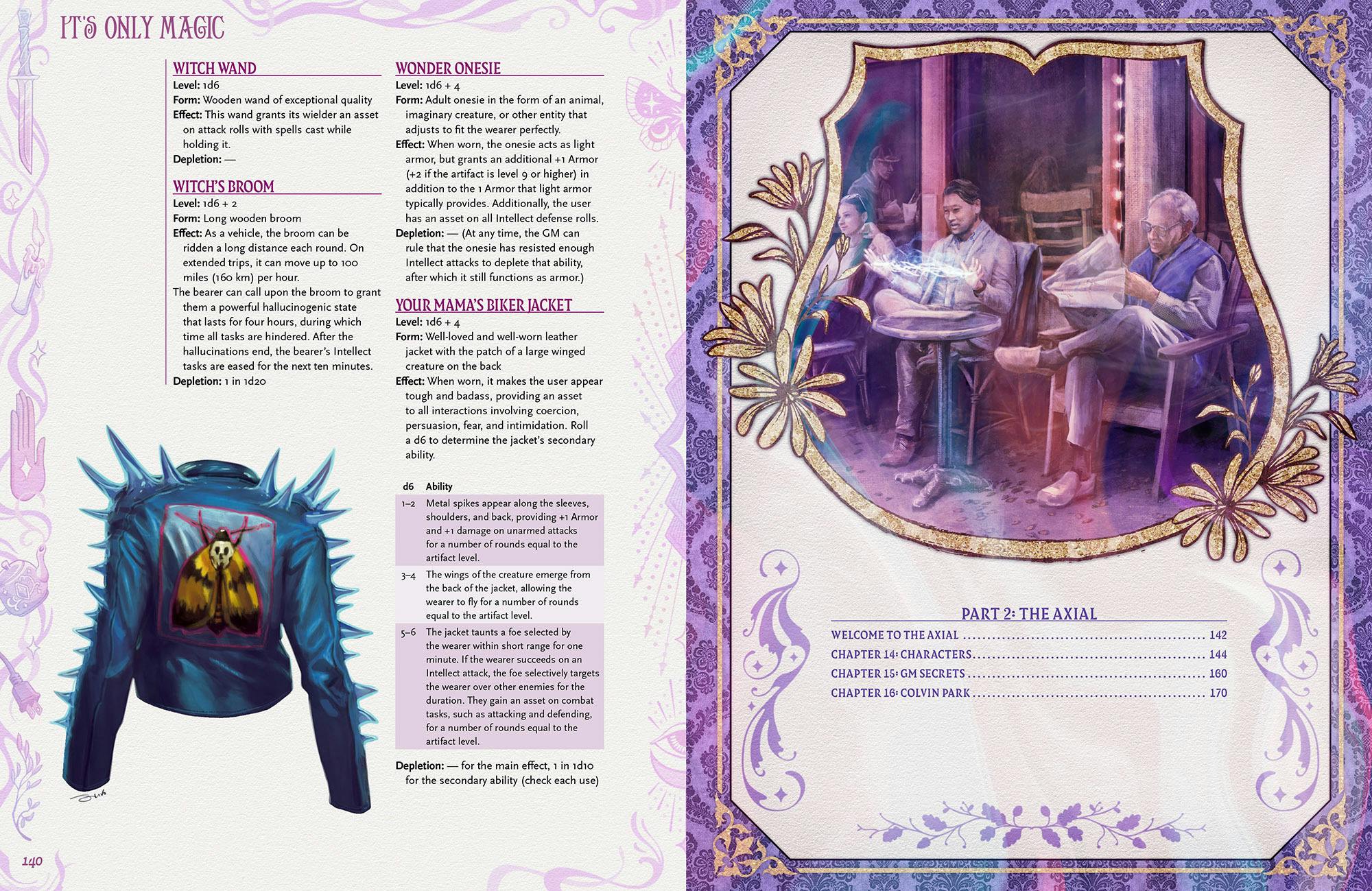 Just got the PDF for It's Only Magic (physical copy on it's way)! I've just had a chance to skim over it and it looks fantastic! One of my favorite Cypher System books. I really want to run this. I also have to say that "Remote Slap" is the best power ever. ;)