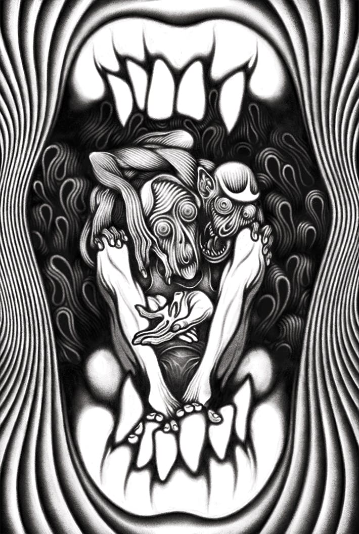 DEATH IN THE MOUTH will be a ~250 page, 6x9" B/W trade paperback with a full color cover. It will include 20 original prose stories and 20 original illustrations. We will have the book available in eBook format for use on your reading and mobile devices (EPUB and PDF.) As a thank you for your support, all campaign contributors will be listed in the end matter of the print and digital versions of the anthology.