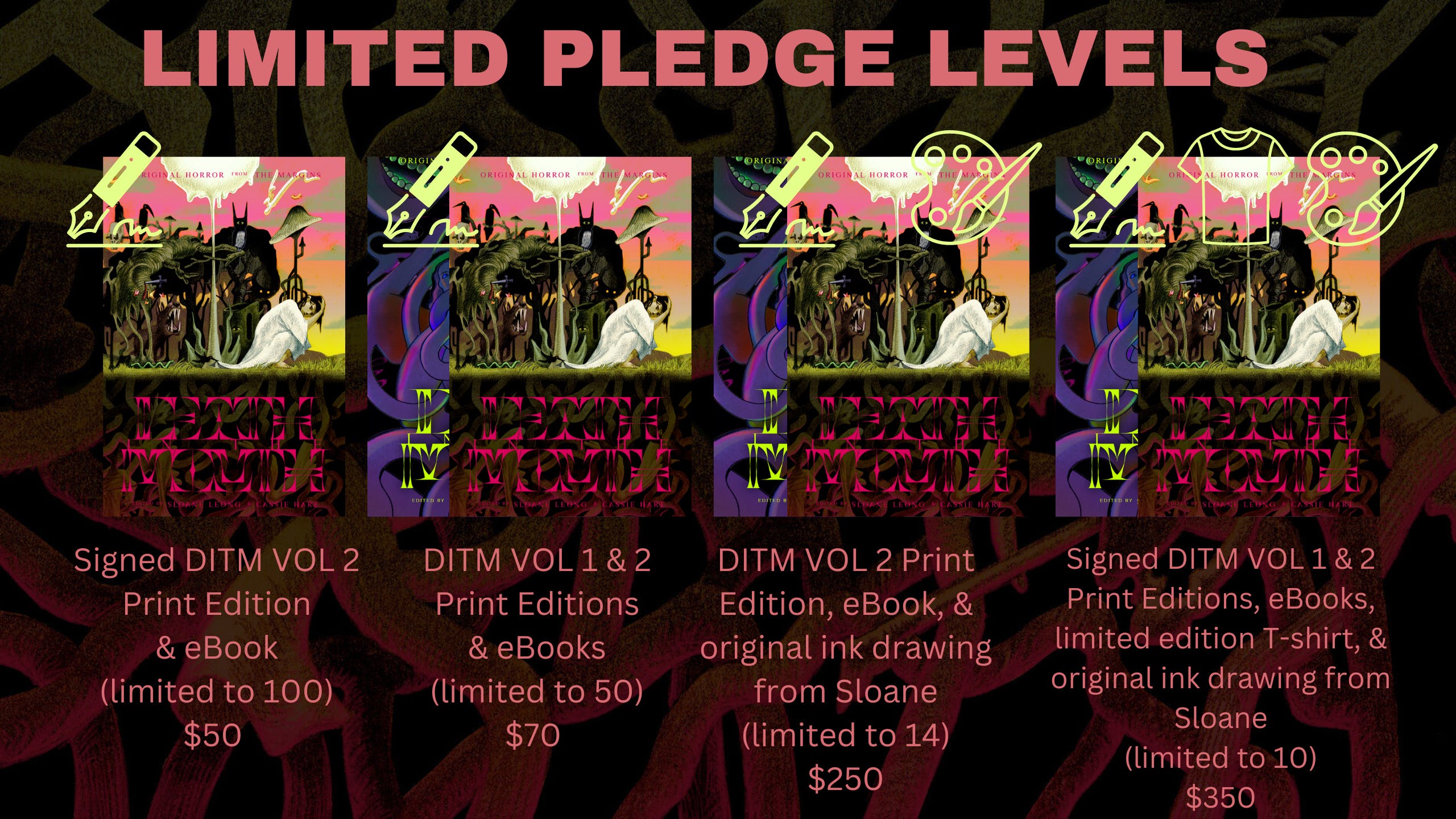 The only way to guarantee yourself a paperback copy of Death in the Mouth is through this campaign. The print edition of this anthology will not be made available to the mass market outside of the few bookshops who will host our book tour events. However, there will be an eBook available in all online bookstores for sale later in 2024.