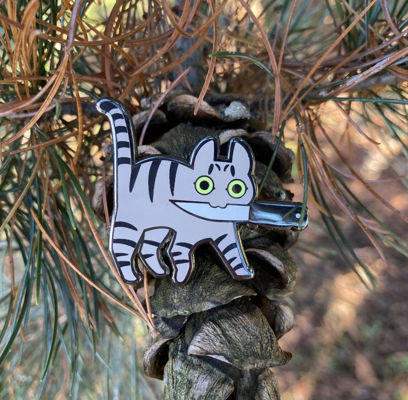 An extensive update to the popular knifecat pin design!