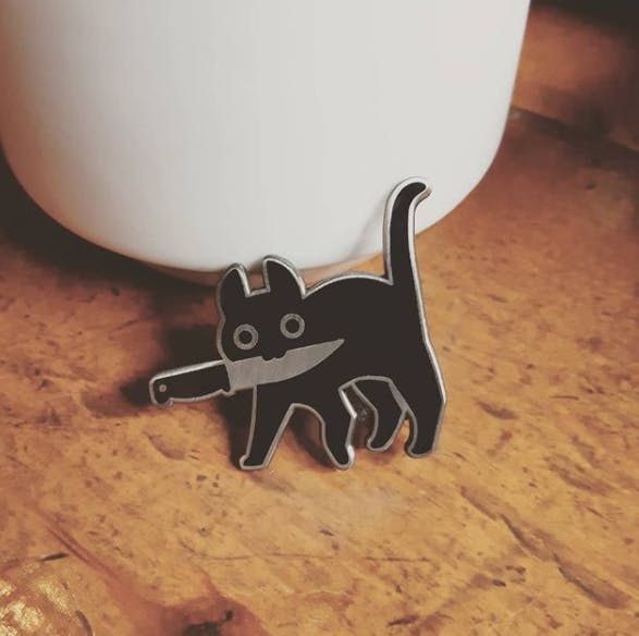 Hello and thanks for looking at my first crowdfunding project! in 2018 I designed my first enamel pins, among them a design of a cat holding a knife that grew in popularity far beyond any expectations i could have ever had.Â