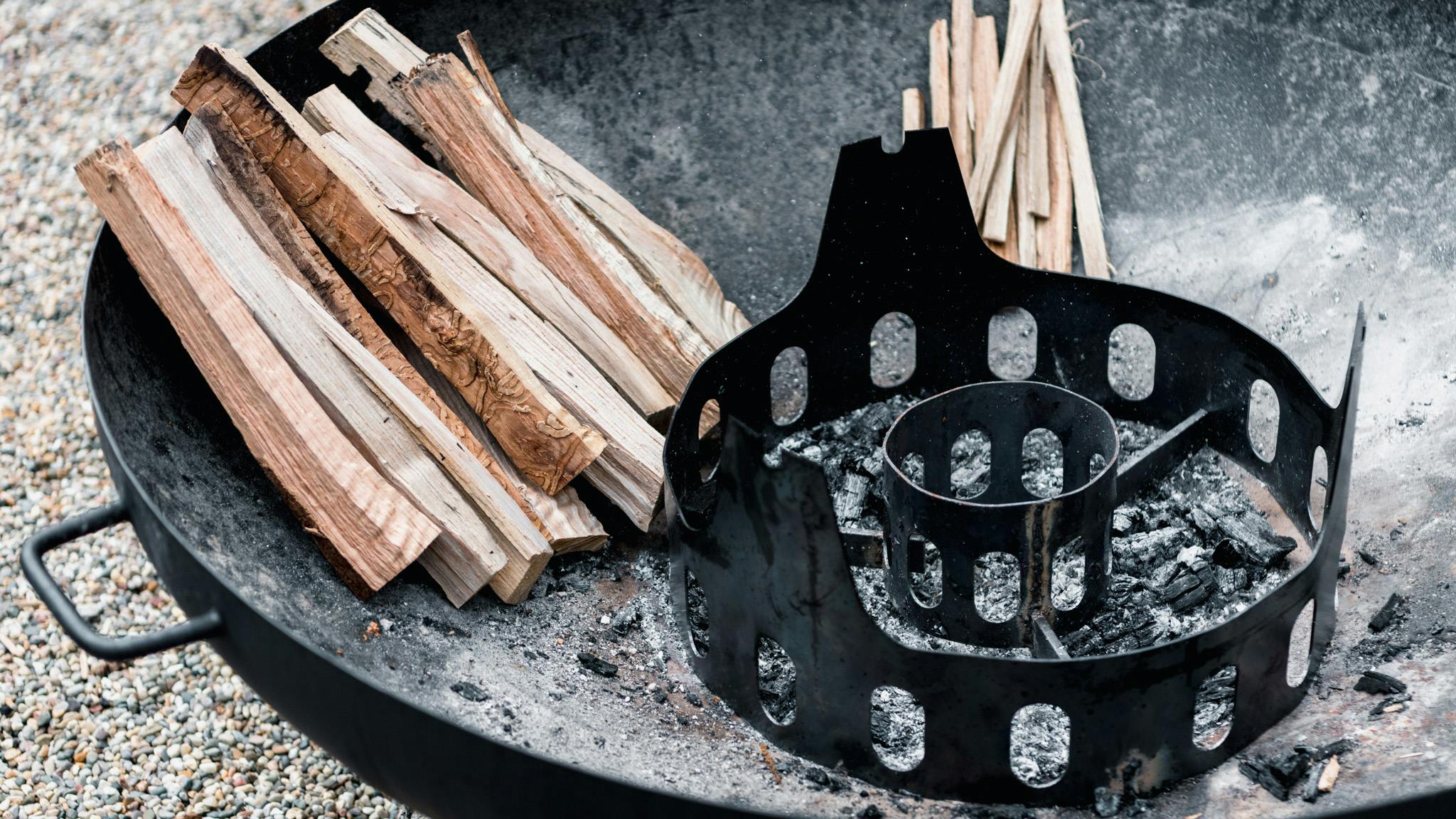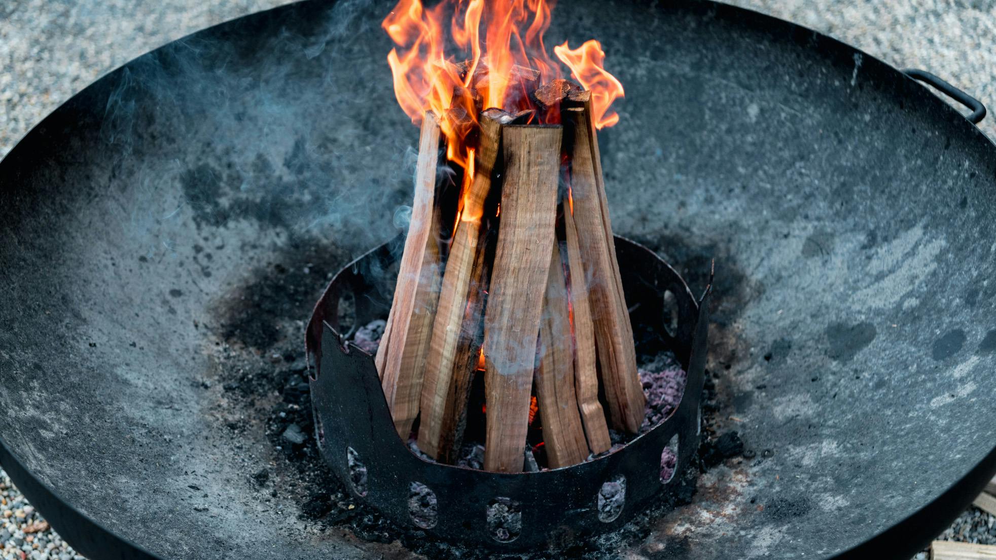 The Fire Pit Grill provides structure as you build your fire, making it easy to ignite kindling and grow the fire with split hardwood.