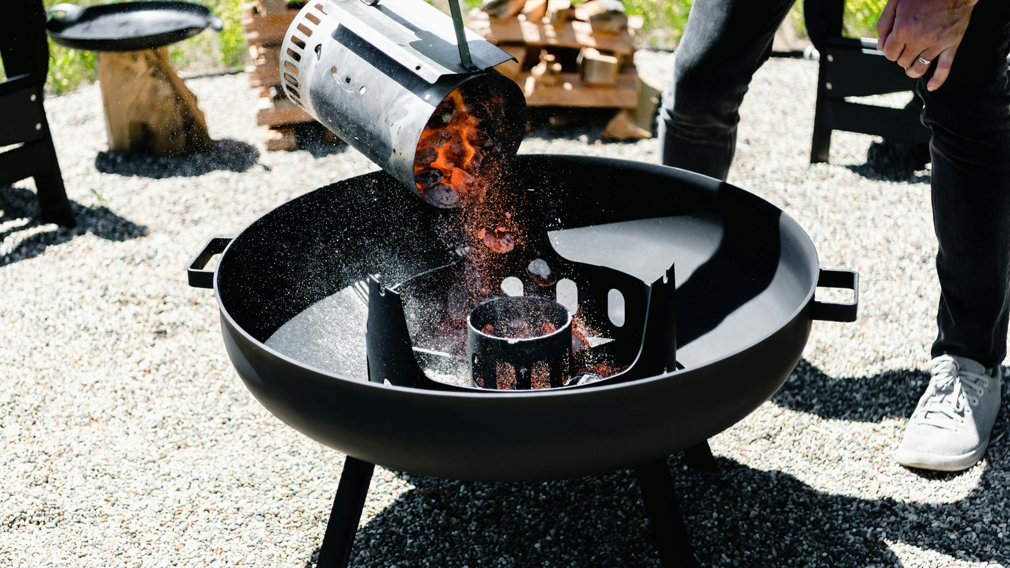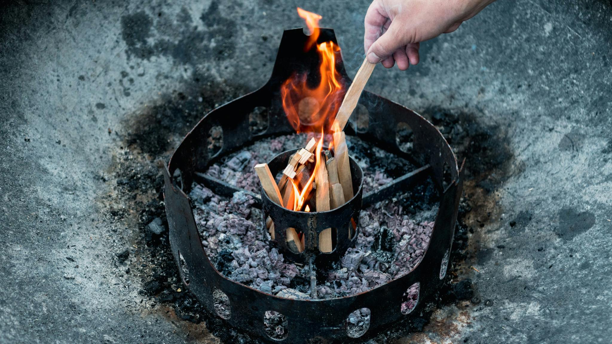 Adding kindling to the core ring of the Fire Pit Grill