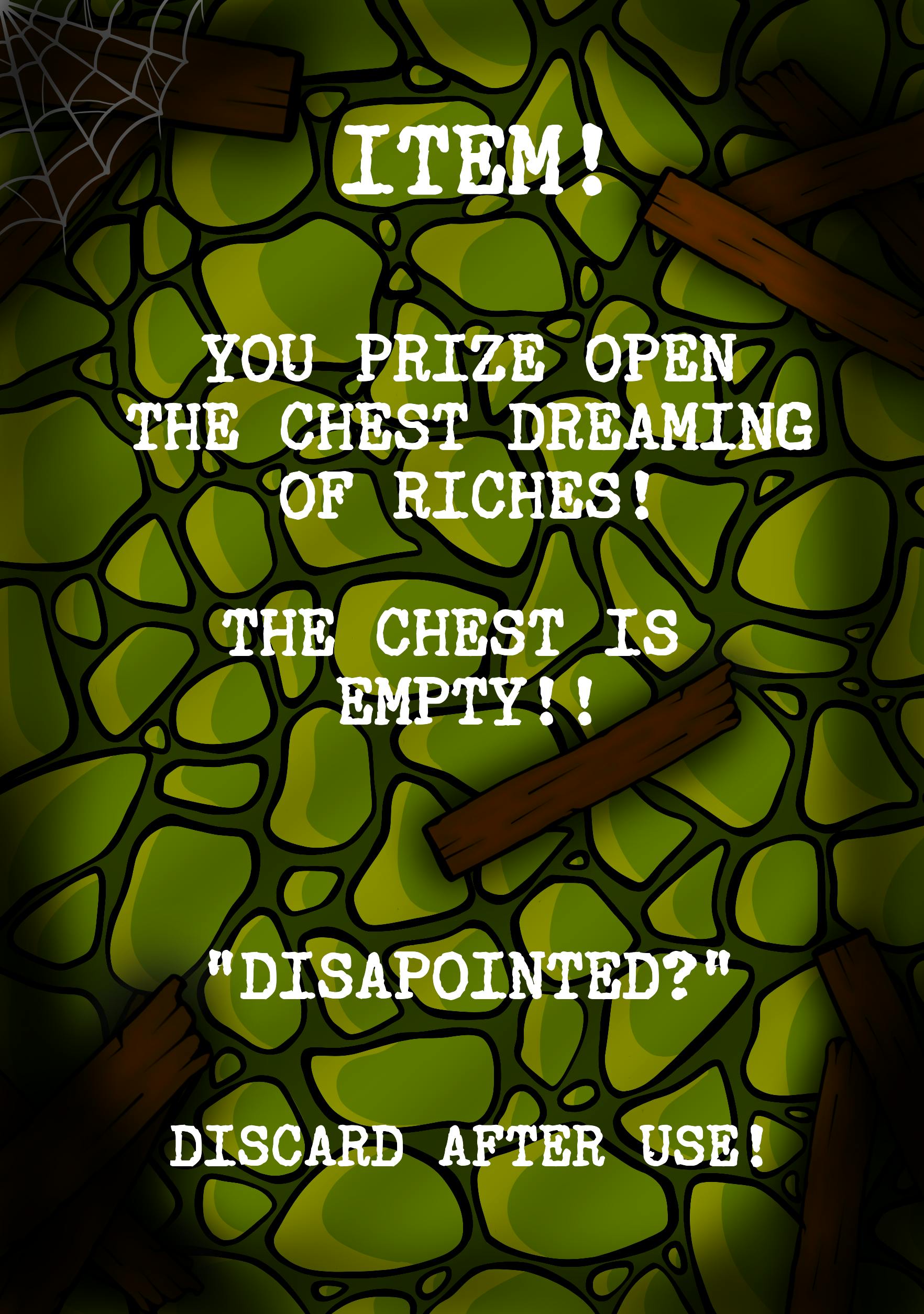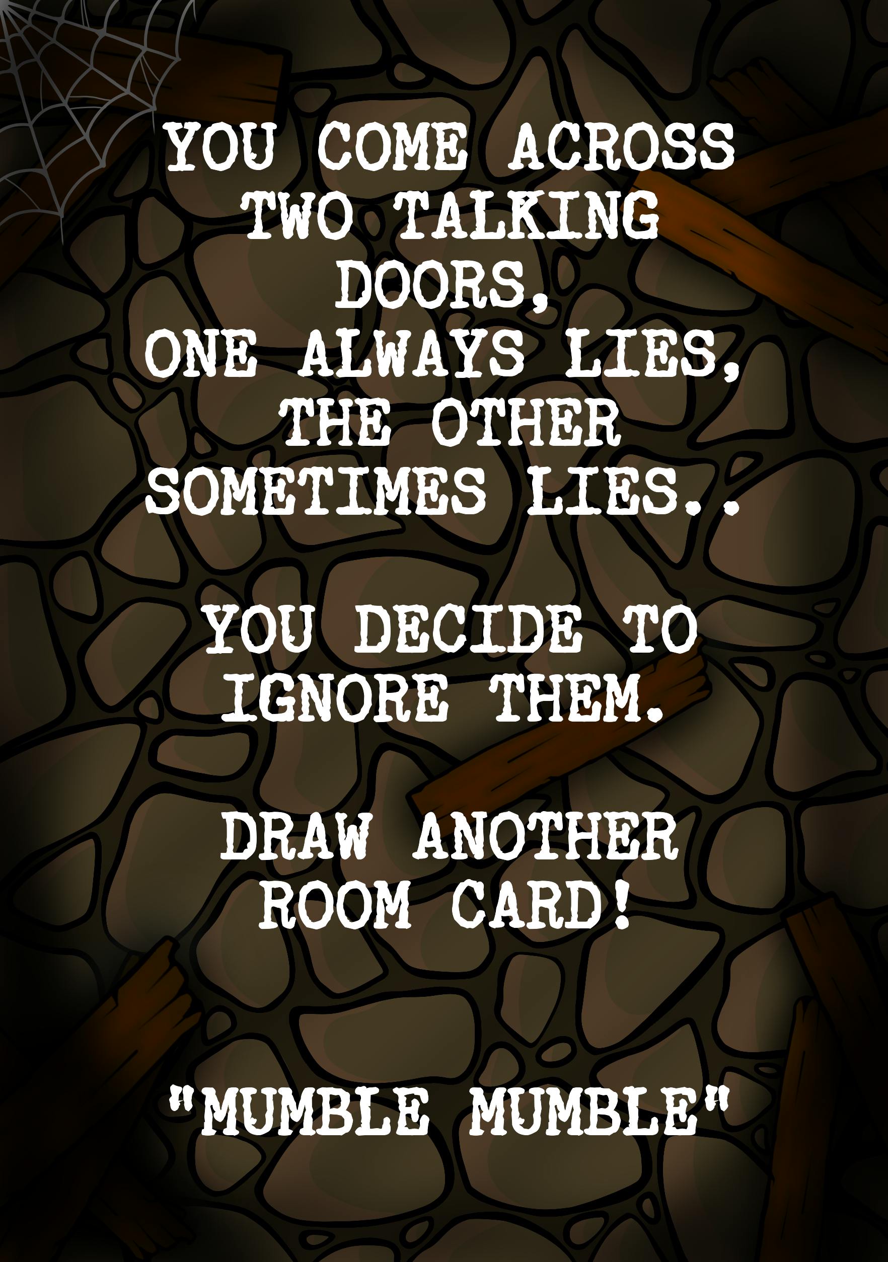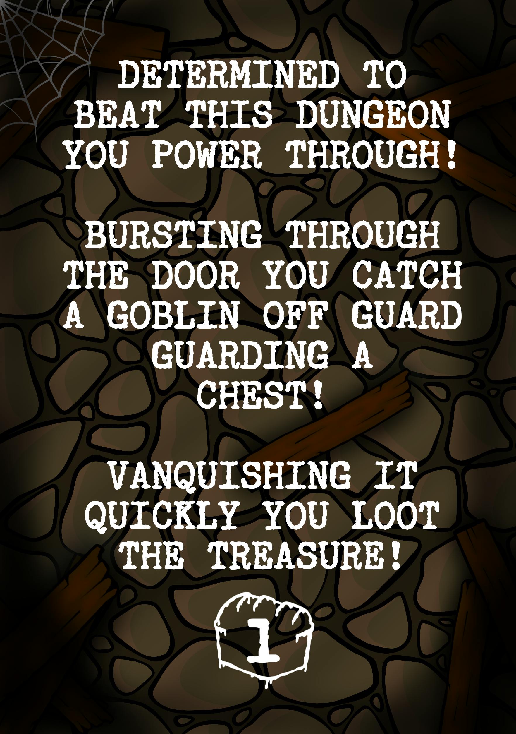 Room and Treasure Cards - Currently creating more individual cards so there are less duplicates. This allows for more variety every game, by adding more references, jokes, innuendos to card text on both dungeon room cards and treasure cards.