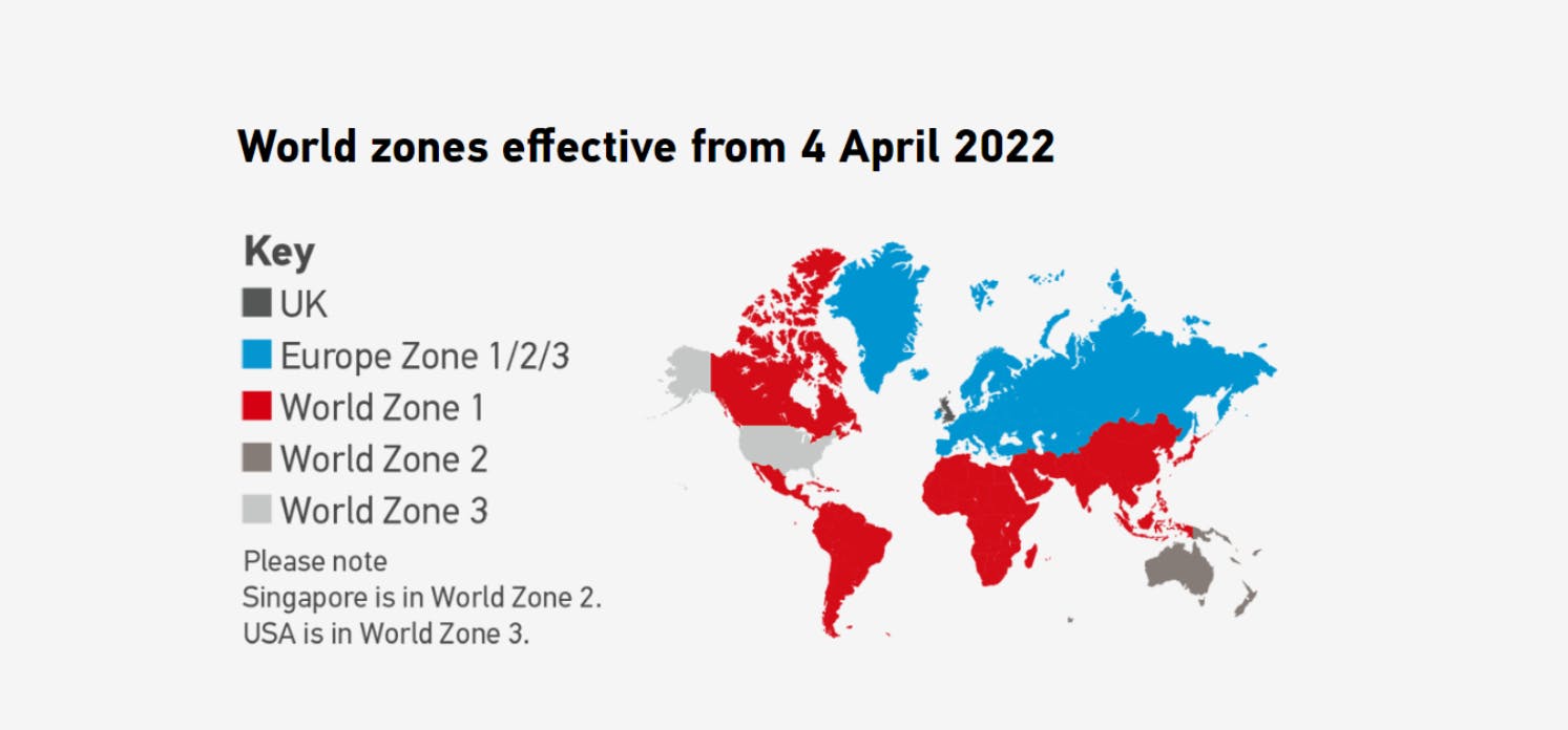 UK - Approx £6 Europe Zone 1 - Approx £10 Europe Zone 2 - Approx £10 Europe Zone 3 - Approx £11 World Zone 1 - Approx £17 World Zone 2 - Approx £18 World Zone 3 - Approx £17