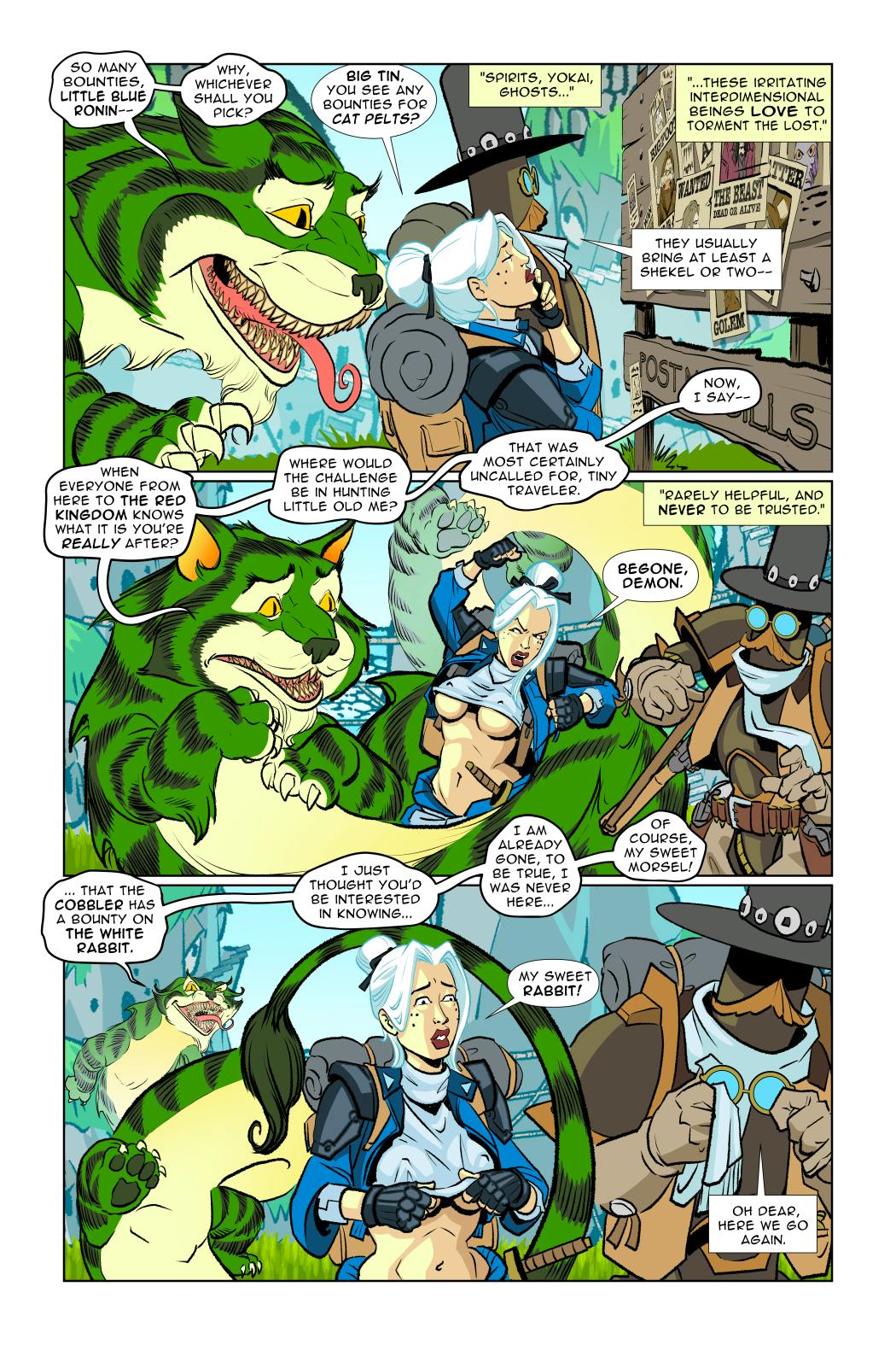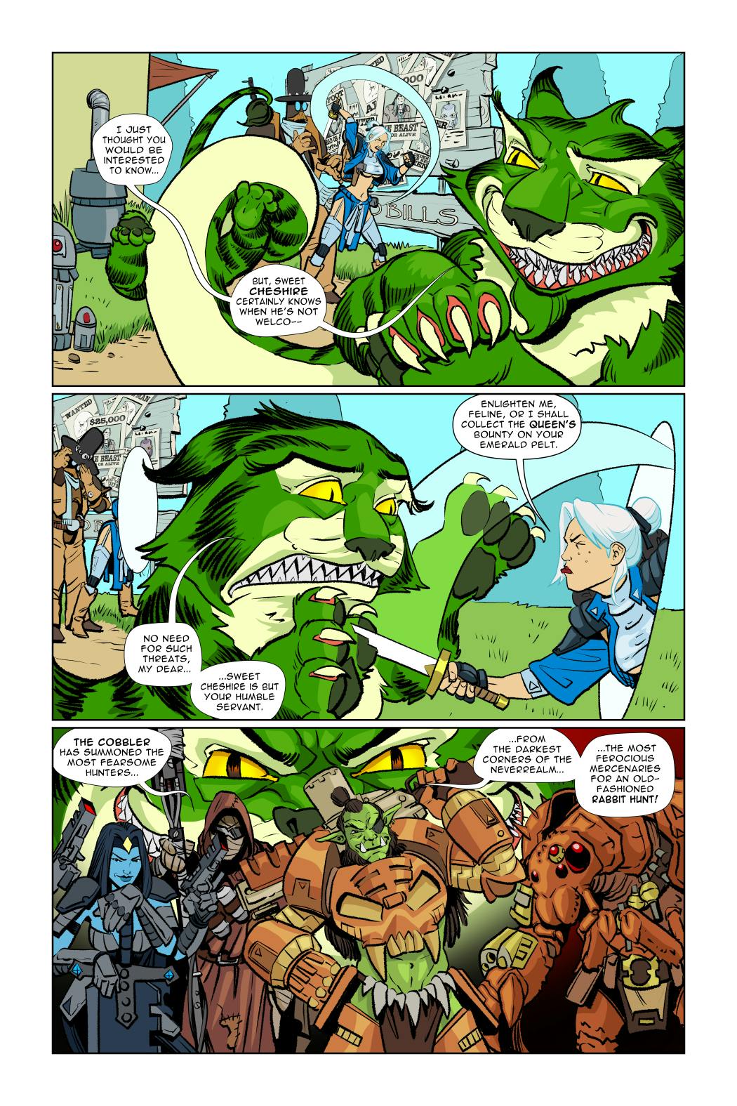 Alice has spent her life trapped in an inter-dimensional rift between worlds... some legends call it OZ, some call it Neverland, but as a child Alice thought it was a Wonderland!  Now, with her ancient clockwork guardian "Big Tin" by her side, she travels the rift with a broken sword that let's her cut holes in reality, hunting alien monsters from throughout the multiverse for hire as she searches for the ever elusive White Rabbit!