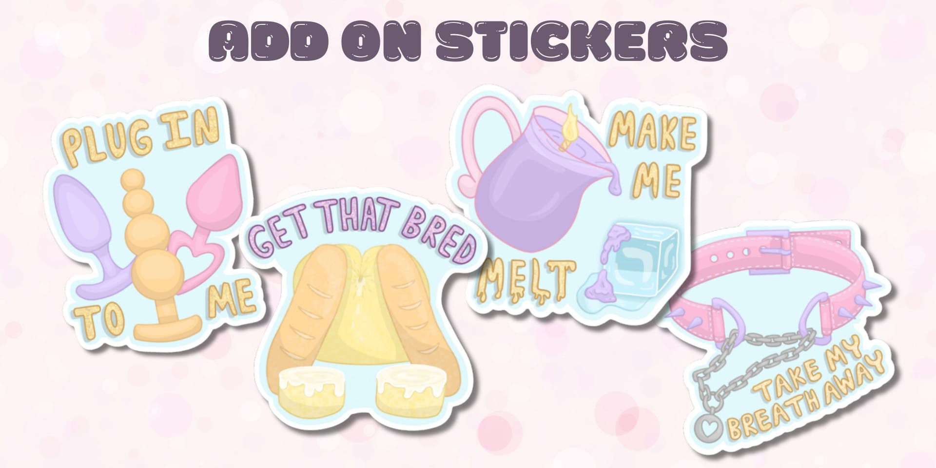 The Kinky Kawaii enamel pin collection features 14 deceptively cute designs. These pins pair cheerful pastel colors and bubbly illustration with punny innuendos and erotic themes. This collection is for anyone who like to keep it cute while getting dirty.