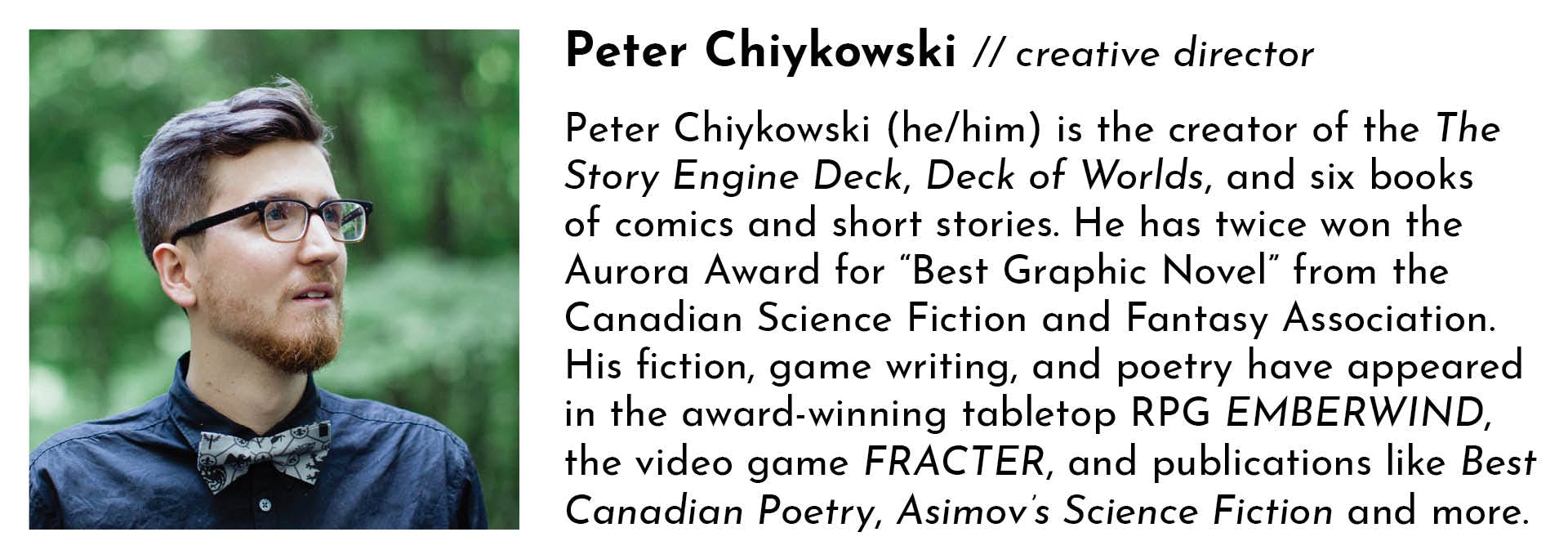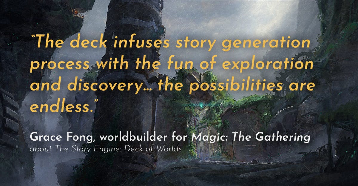 The Story Engine: Lore Master's Deck is the ultimate creative jumpstarter for writers, GMs, Dungeon Masters, and worldbuilders who want to fill their stories with rich, interconnected lore. It was created by award-winning author, game writer, and designer Peter Chiykowski, who has successfully delivered 7 crowdfunding projects, including The Story Engine Deck and Deck of Worlds.