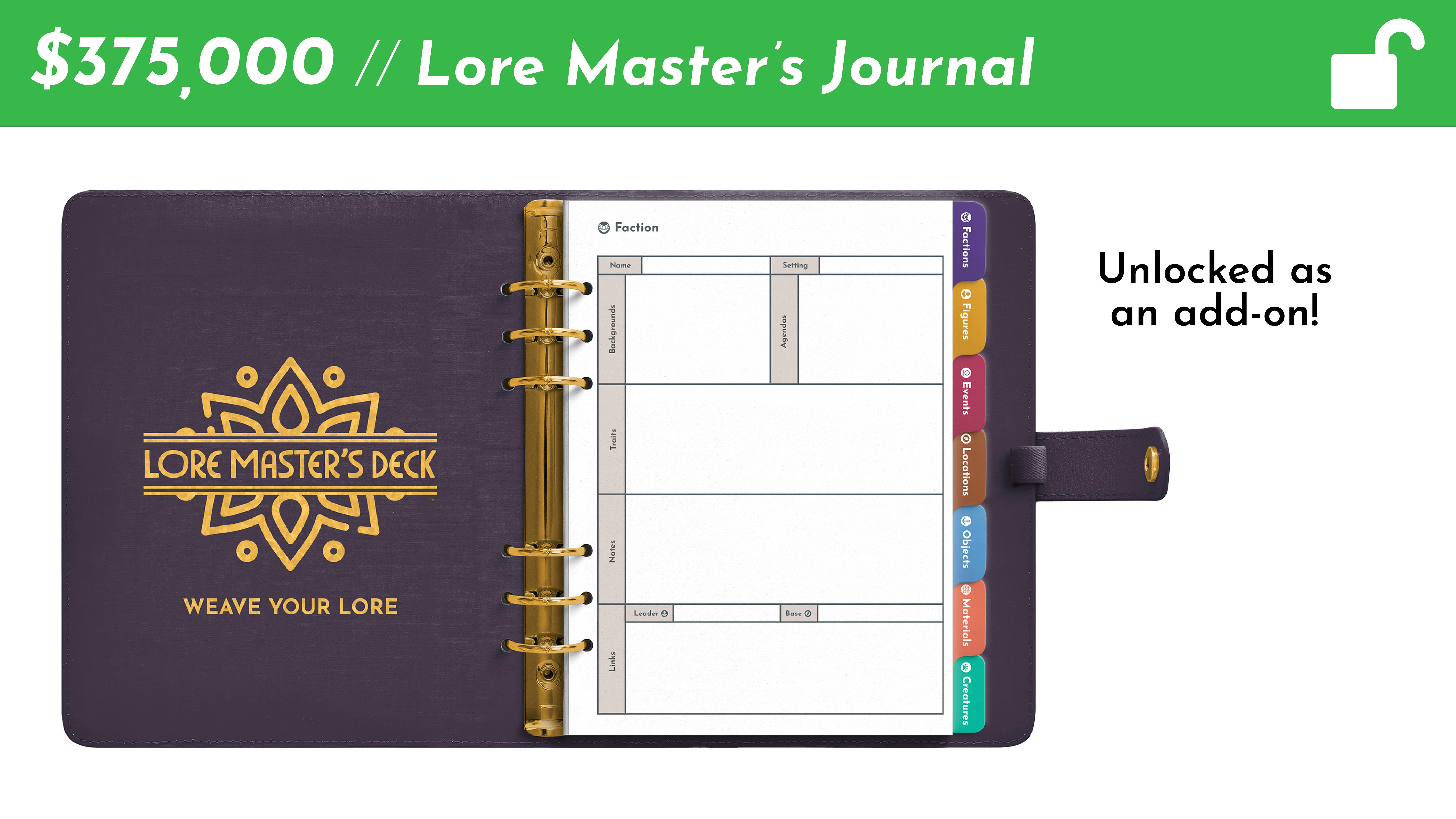 Check out our many livestreams through the campaign to learn more about the deck, and how to unleash your wildest ideas using Lore Master's Deck!