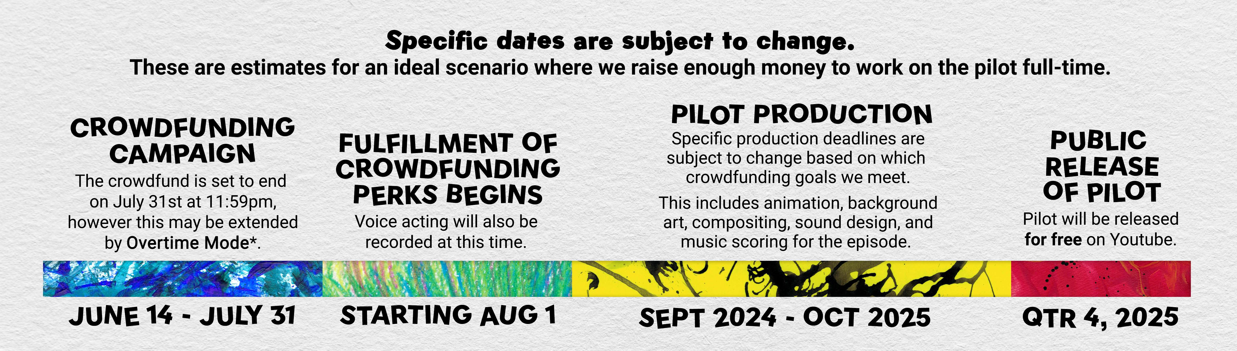 While our initial goal will allow us to make the pilot episode, we want to go above and beyond. That means making the episode's production our full-time job. This would allow us to dedicate ourselves fully to the project and finish the episode for you all sooner.