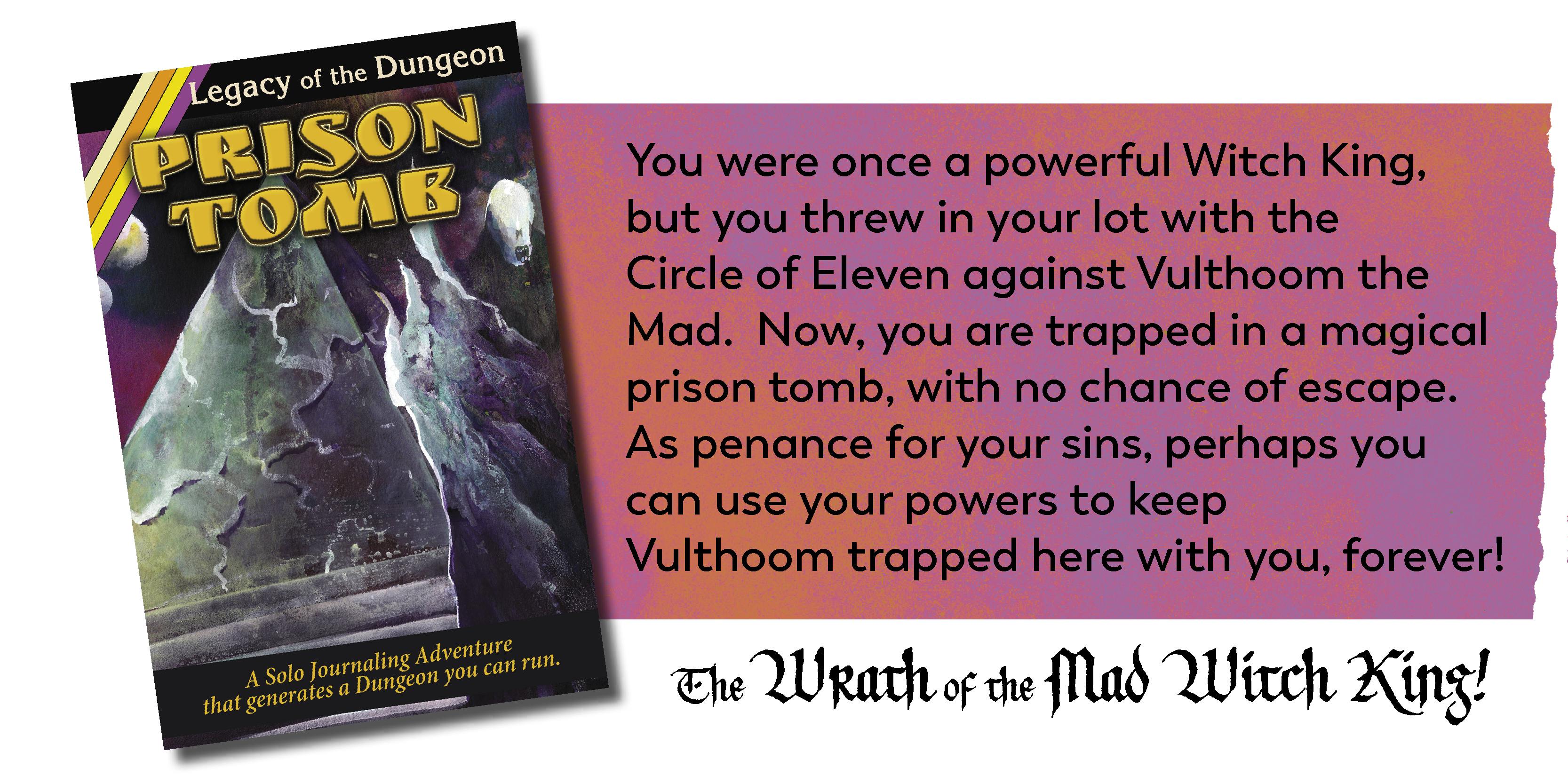 As part of the journal, you are building a prison and filling with with traps, magical creatures, spells, tricks, and lore - and when you are done, you can have players explore the dungeon that you created using MAZES Fantasy Roleplaying (or your favorite OSR style ruleset).