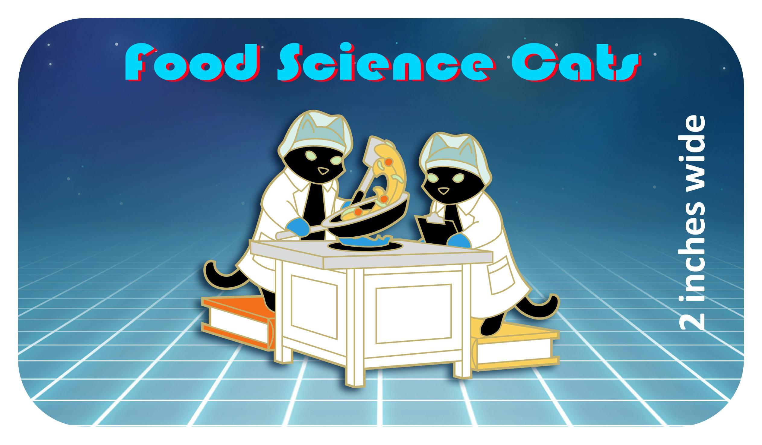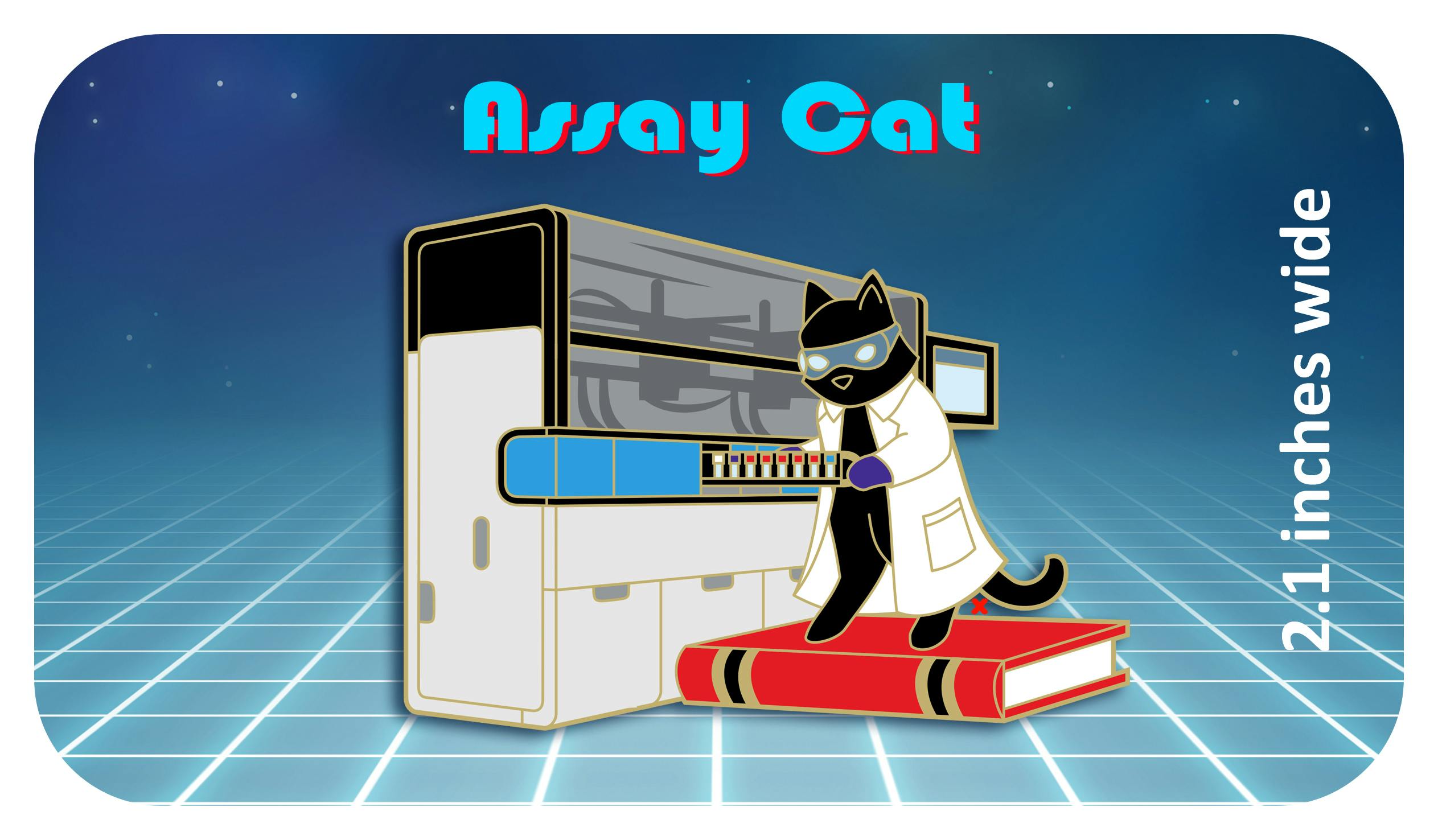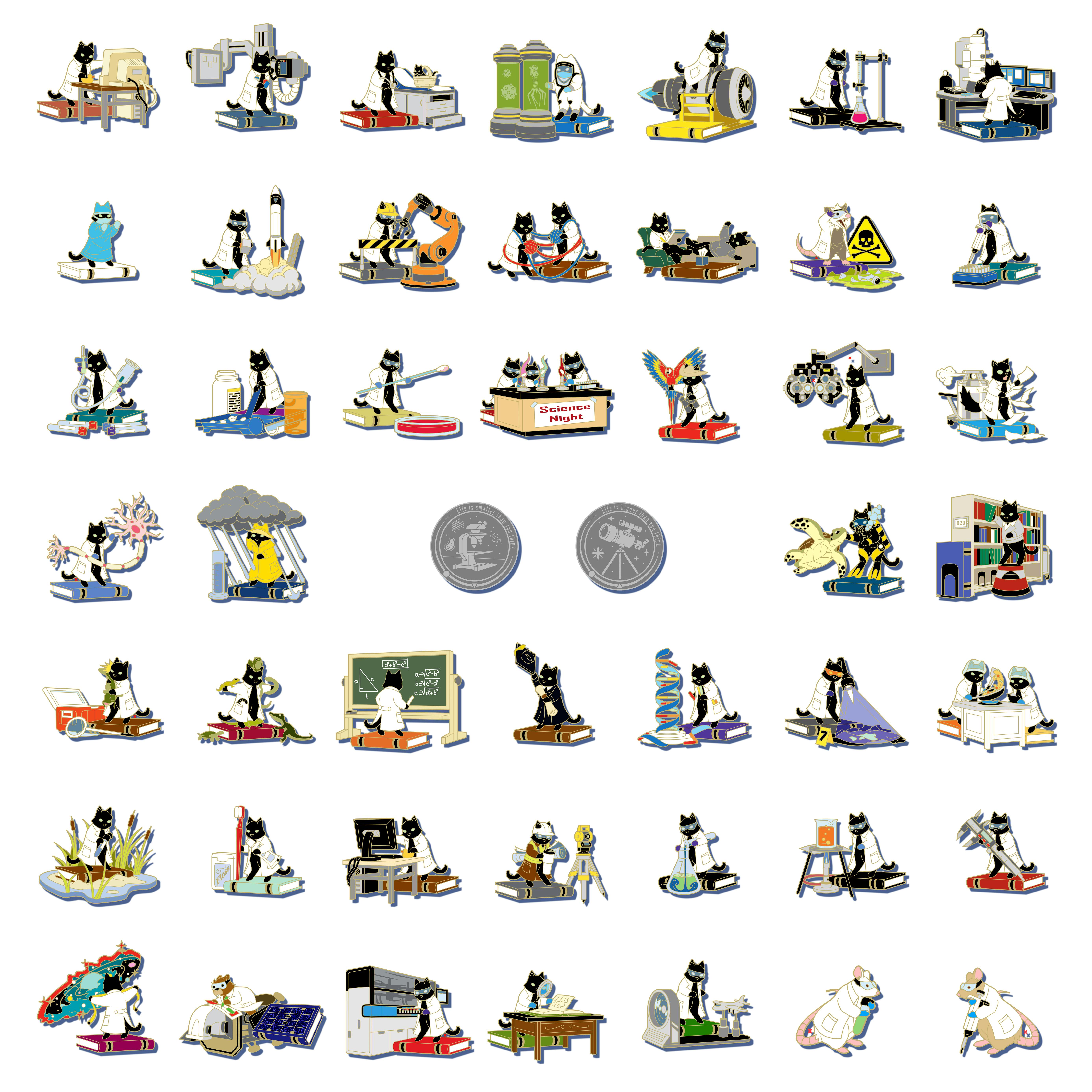 I also thought it would be fun for each of the pins to basically be the same cat in a white lab coat on a book, but doing a different type of science!