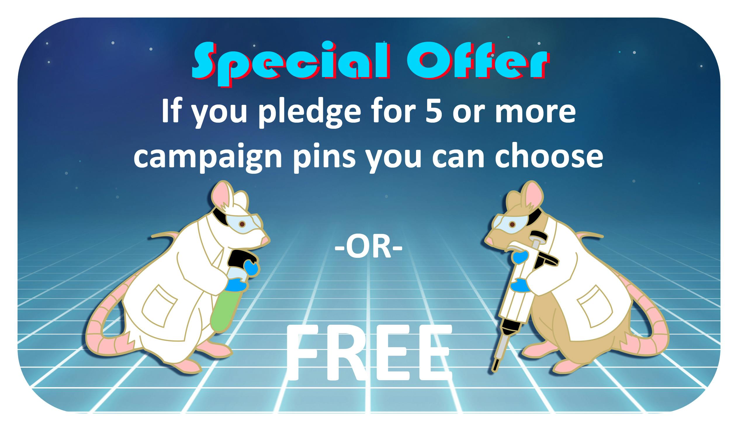 You will receive one of each pin in this campaign! That's 35+ pins! If any designs are added during the campaign, you get those too at no additional cost! You will also be able to add additional campaign pins in the pledge manager for $12 each. Both Lab Rats are included in this tier.