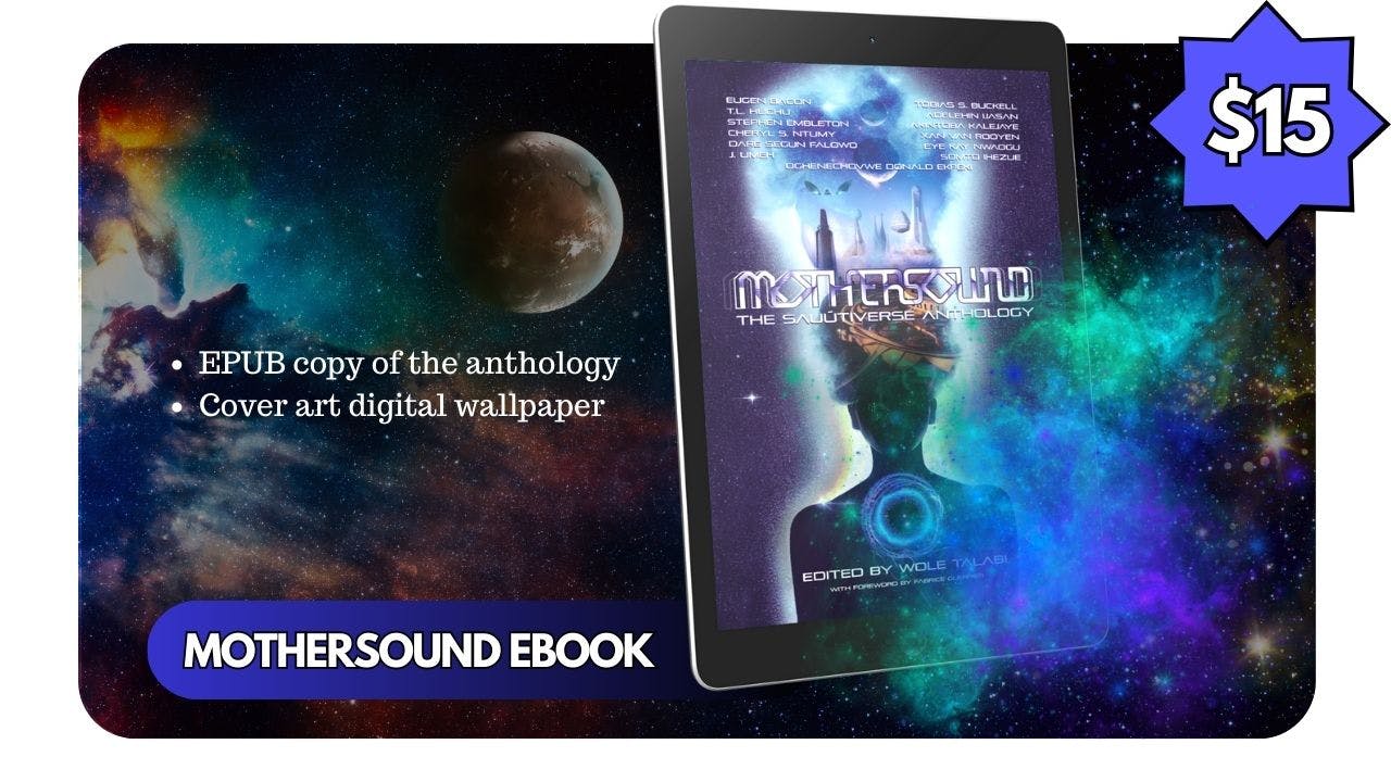 Limited to only 3 backers Get a paperback copy of Mothersound: The Sauútiverse Anthology Also get an ebook copy of the anthology. Plus novella development and line edits (up to 50k words) by Eye Kay Nwaogu.
