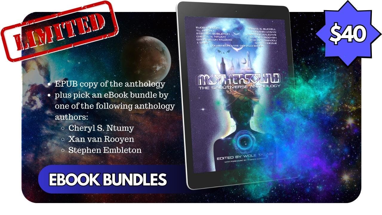 Limited to only 2 Backers Get a paperback copy of Mothersound: The Sauútiverse Anthology Also get an ebook copy of the anthology. Plus get one of the following signed book bundles: