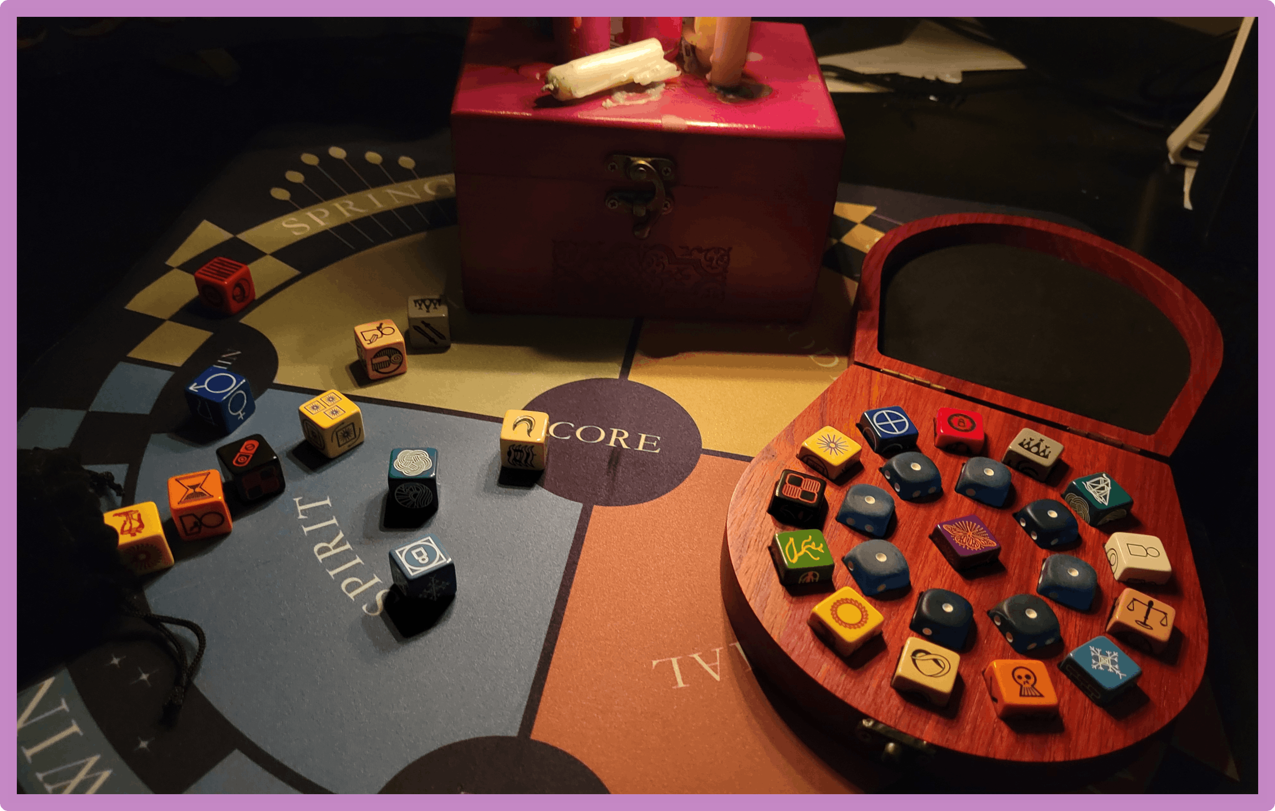Second, you consider where the dice landed in your reading grid, as the grid informs what the die is related to.