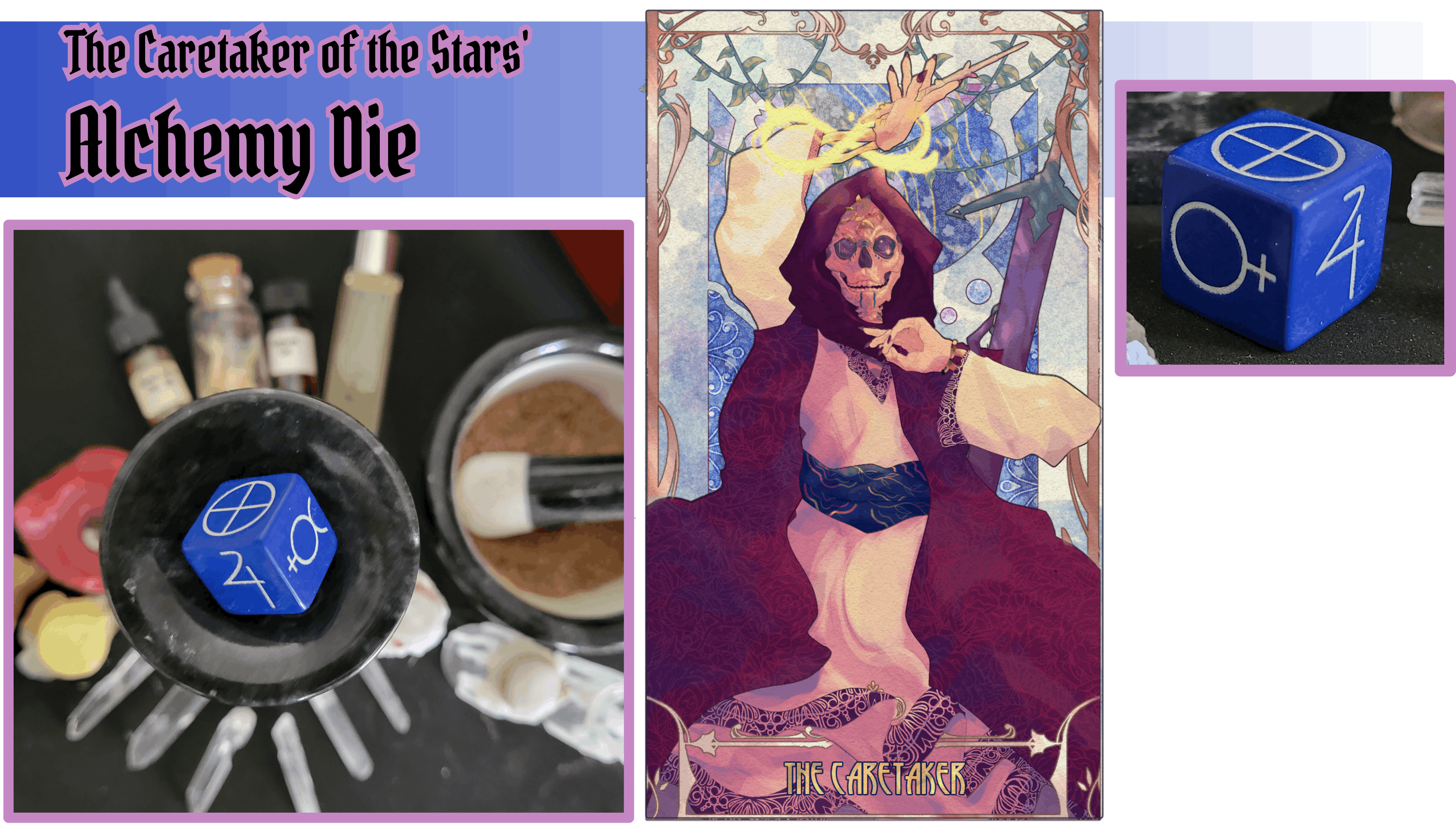 Amy Smith, alongside Samantha Dow and the Caretaker were guests on the first project, each designing a die of their own. Invaded by the alchemy and consumed by the process, Amy has also taken on the role of photographer for some of this project’s ad images and worked with Seven to redesign and update the designs on all the dice faces. https://wormdark.com/