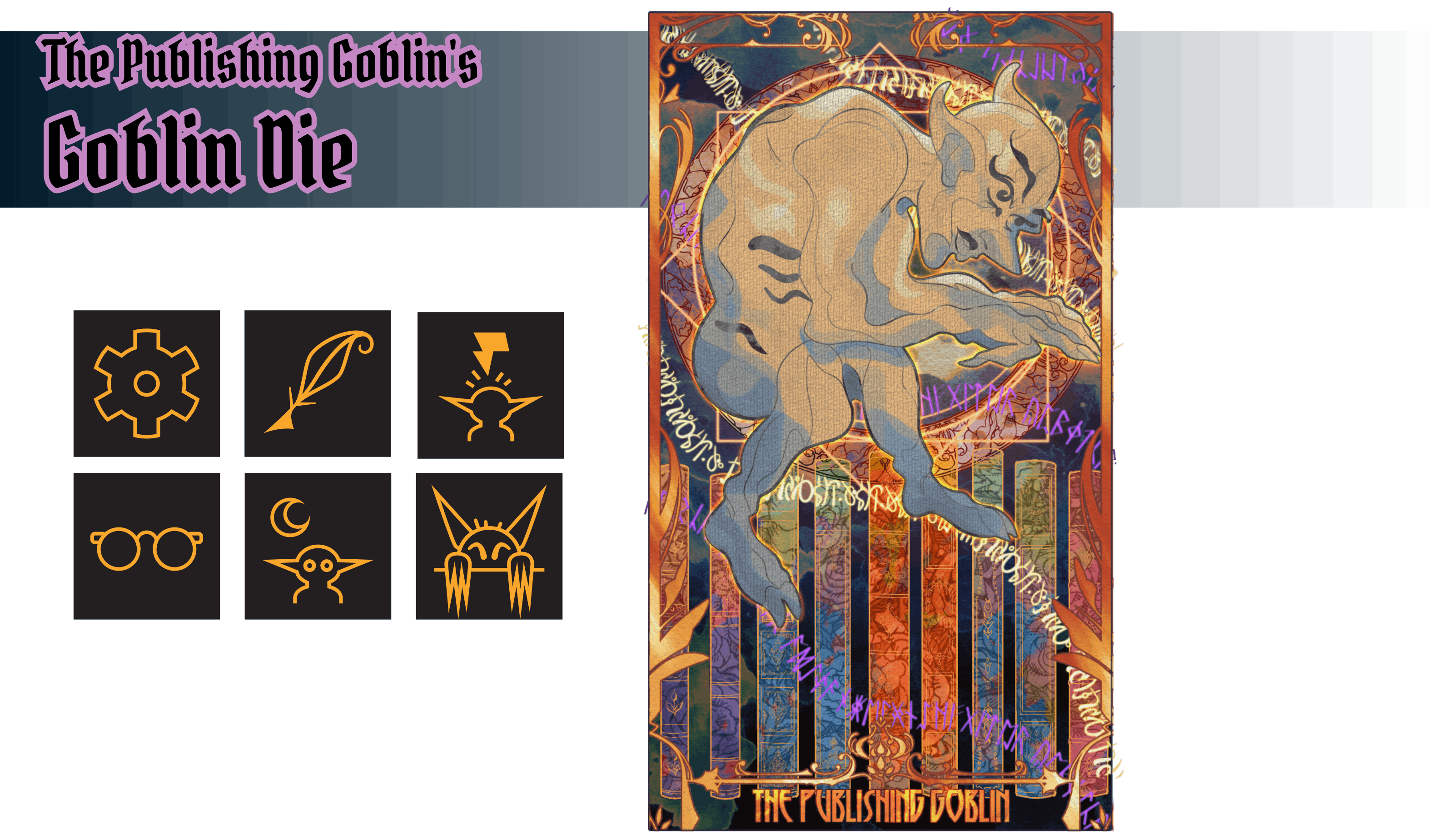 I'm Seven, and I've been on an independent publishing journey for some time now! In 2010, I put together my very first book, Limping Concrete, a collection of my poetry and short stories, and self-published. It featured work from as far back as 2007. I immediately followed it up with additional books the next two years, and since that first book, I have published over 20 books, made some music, a fictional podcast, roleplaying games, board games, card games, tarot decks, these oracle dice, small video games, and more. My journey crowdfunding started under the name Cosmic Mirror Games in May of 2016 on Kickstarter. I have since run nearly 20 projects on crowdfunding platforms now, shifting from games to tarot and divination tools under the name Seven Thirteen Books, until finally accepting my title, Publishing Goblin. Now, I'm just going to start publishing anything and everything I want, and I thank you for joining me on this journey!