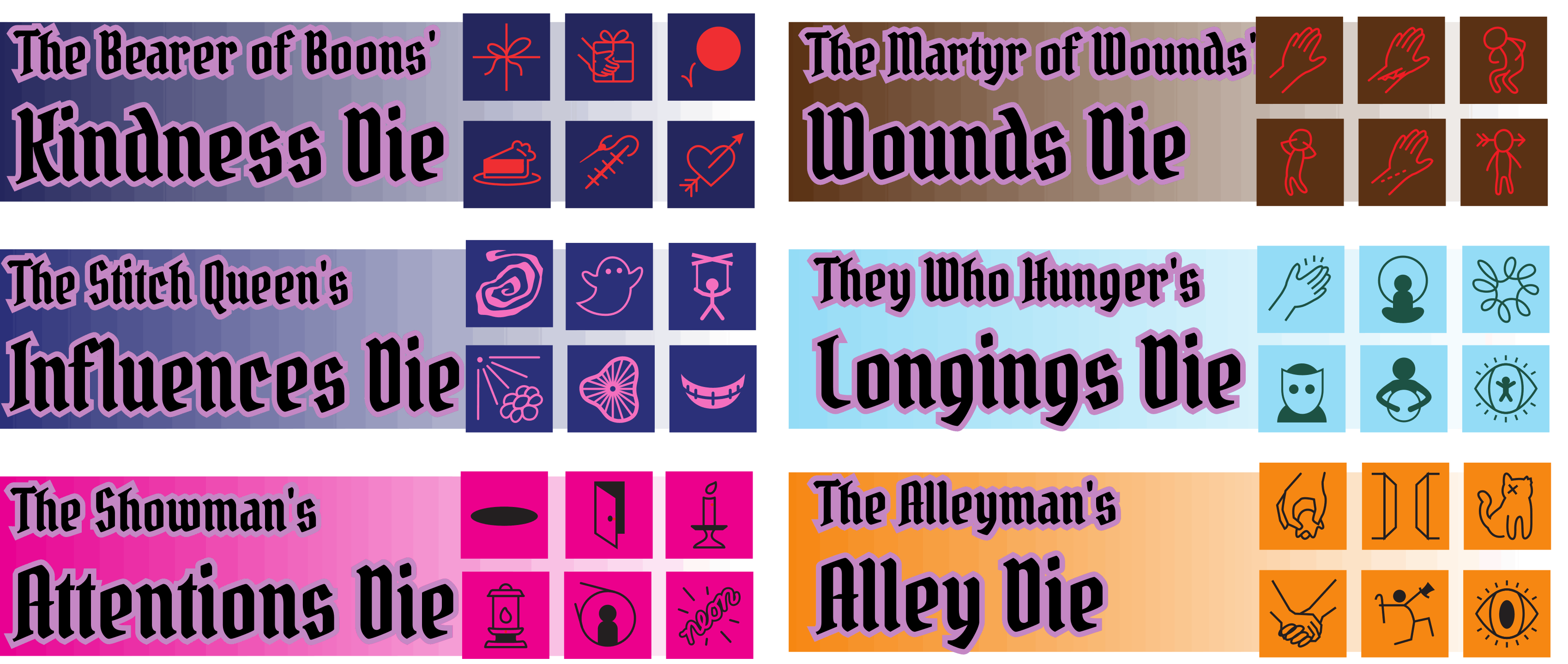 225,000 - The Bearer of Boons, The Martyr of Wounds ... and the artists each get a bonus $100 to their pay! +10 Community Copies and +$100 to Community funds! 250,000 - The Stitch Queen, They Who Hunger ... and we unlock the Reading Journal, a 200-page workbook that is made for dice readings, now available as a $10 add-on! 275,000 - The Showman, The Alleyman ... and the artists each get a bonus $100 to their pay! +10 Community Copies and +$100 to Community funds! 300,000 - The 22nd Die is unlocked and its Lord added to the print set. We will work together through votes to determine who the Lord is, and what faces their die has!