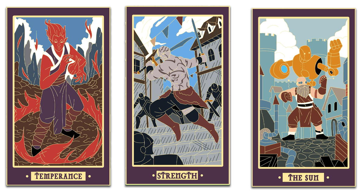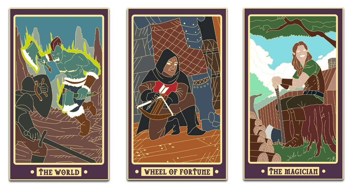 I sense you are on a quest for treasure and adventure. Look no further, for I have seen in the cards that your journey through the realms of Dungeons & Dragons will lead you to a most fortuitous discovery - a collection of enchanted pins reflecting the essence of heroes that will guide you on your path to victory. Each pin possesses its own unique magic and will serve as a reminder of your conquests.