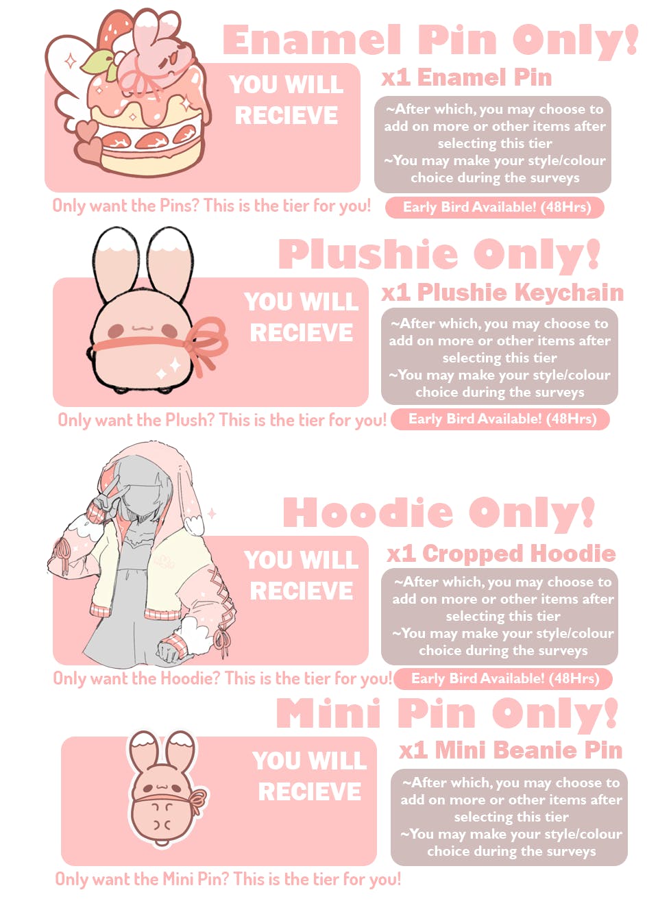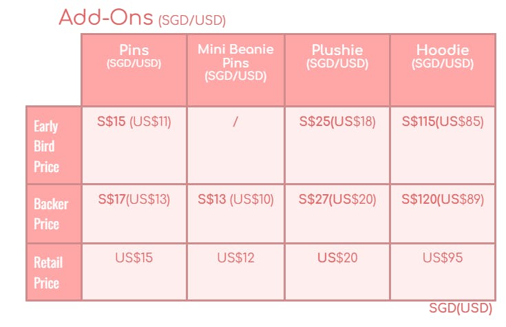 With your help, every goal we reach, I'll be able to create more items of Bibi and Bubu! Please note that all prices are in Singapore Dollars (SGD) unless stated otherwise! :)