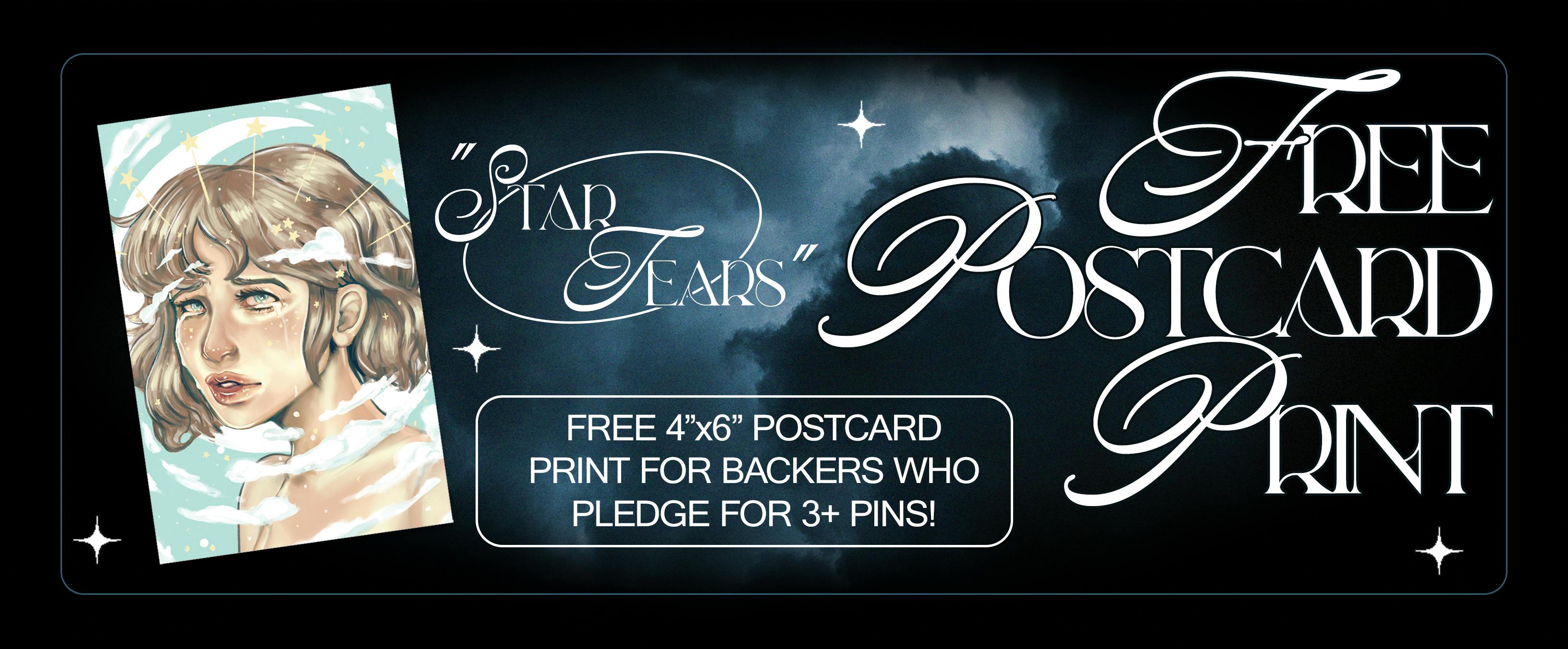 I'm also offering a free postcard print for all backers who pledge for 3 or more pins! This 4"x6" print is also available as an add-on.